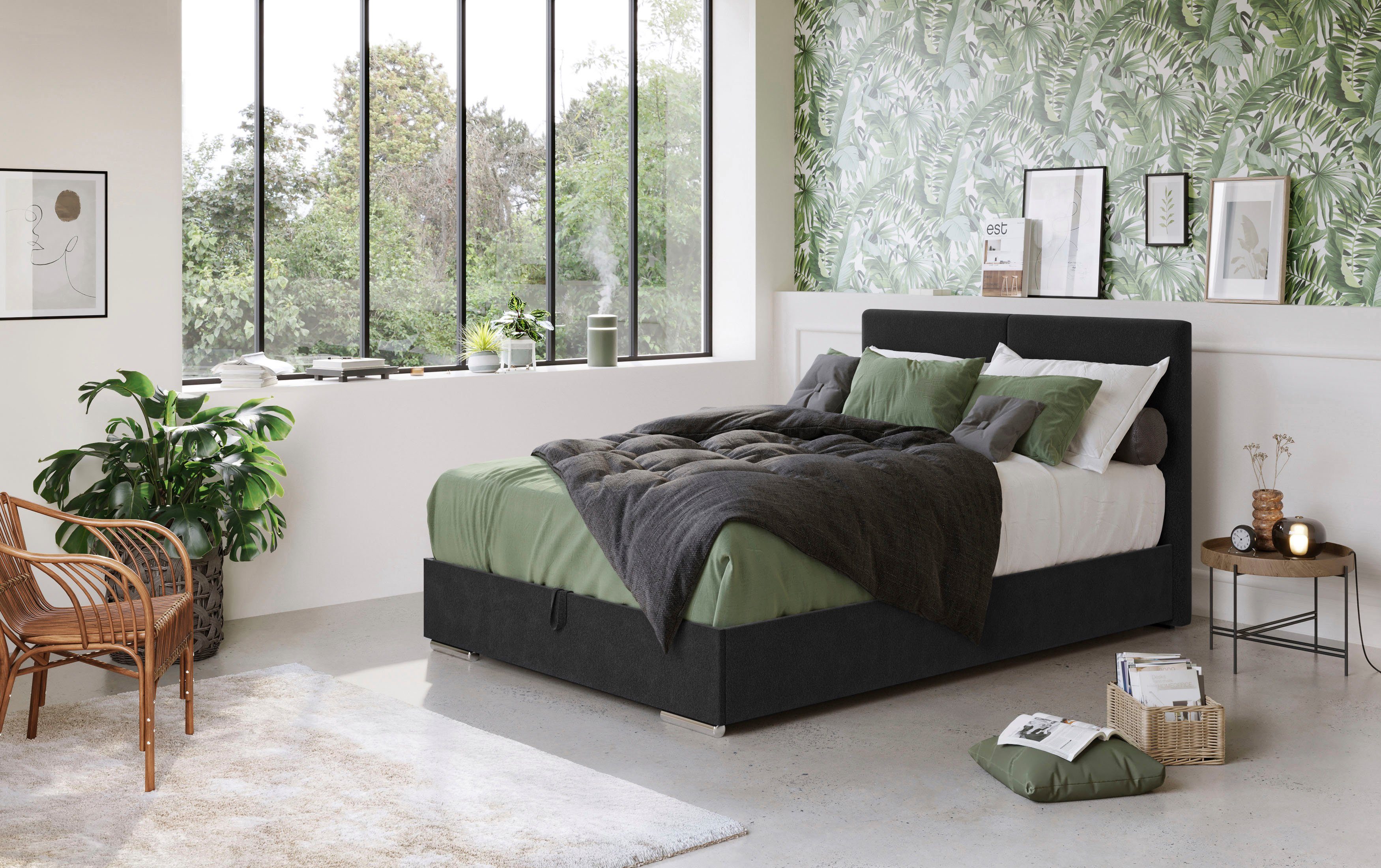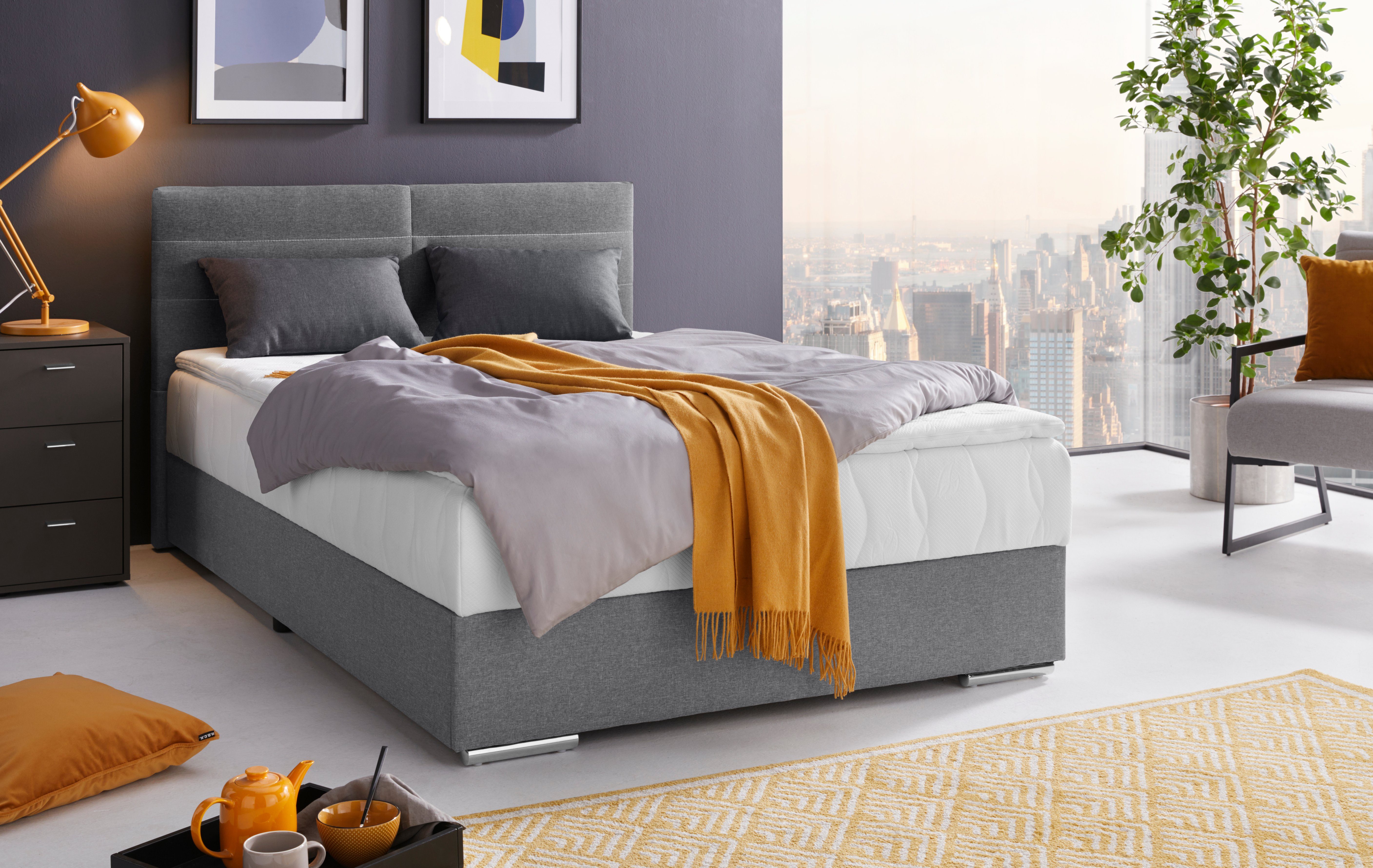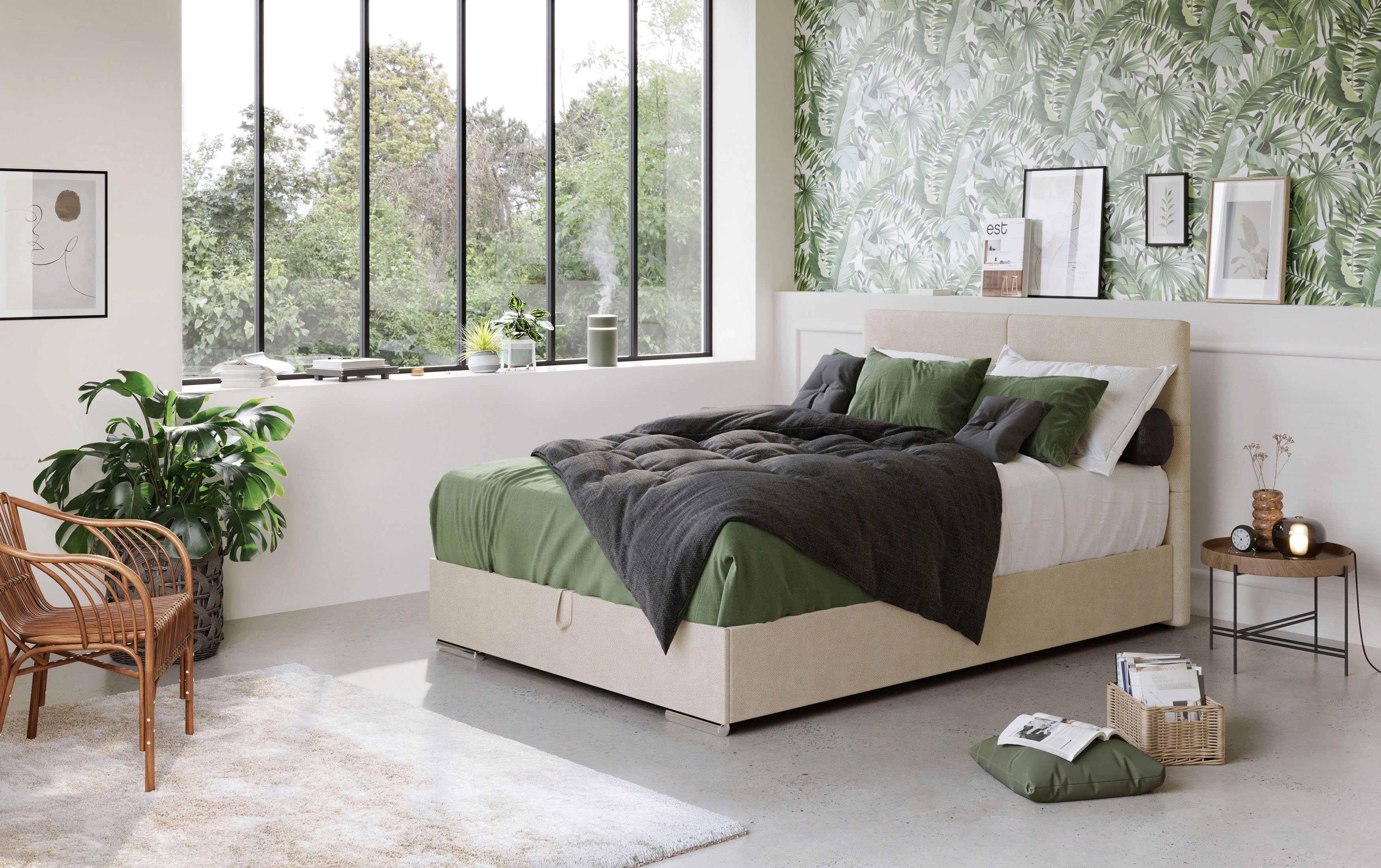 Verwandle das Schlafzimmer zu deinem neuen Lieblingsort — mit dem Boxbett »Tom mit Bettkasten, Topper und Zierkissen« von COTTA.