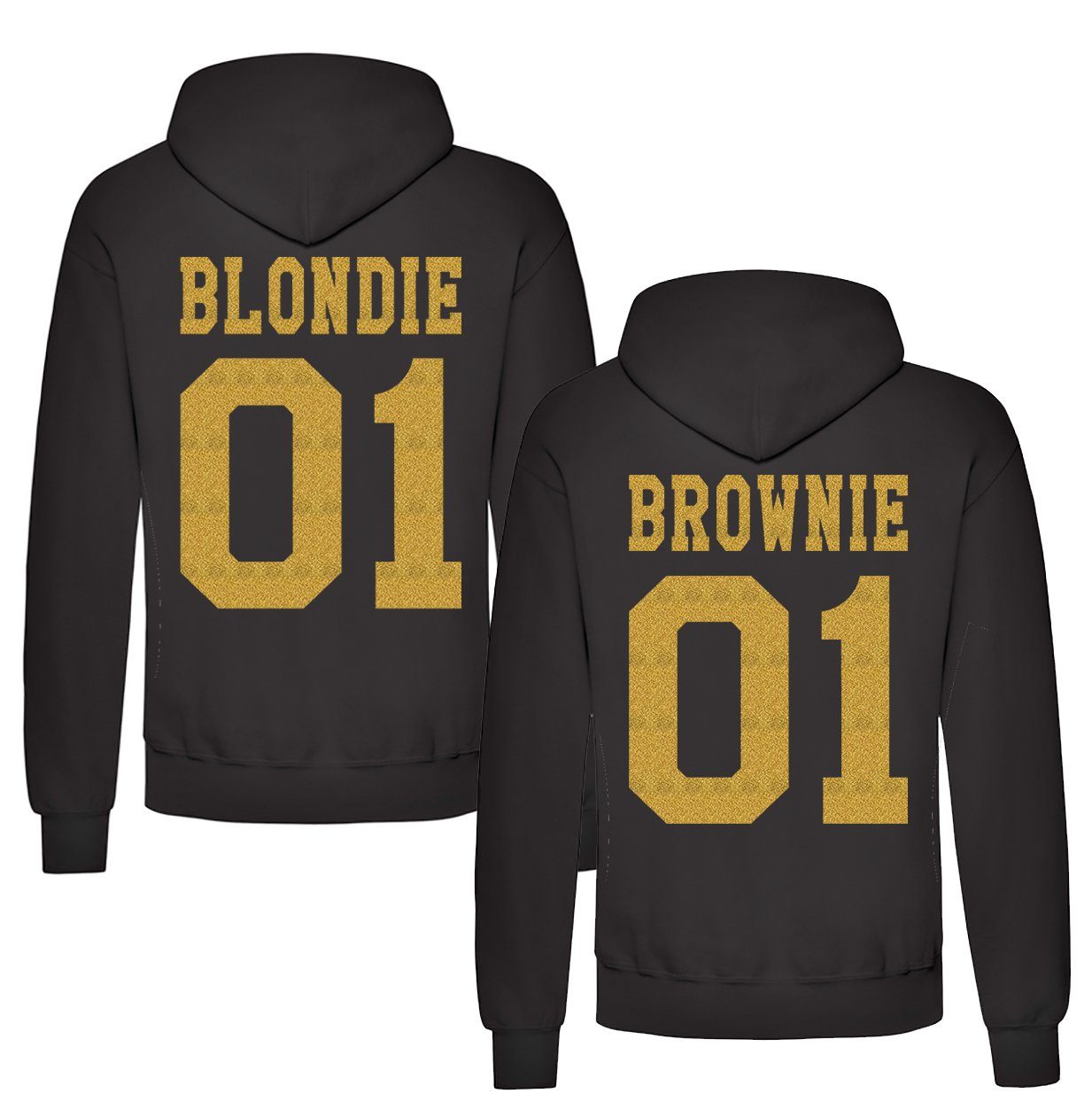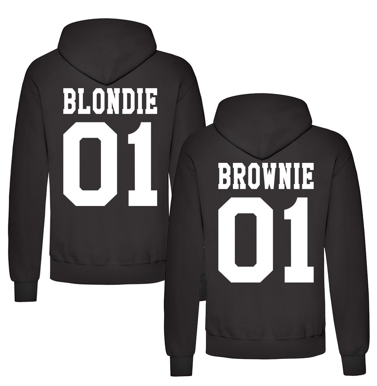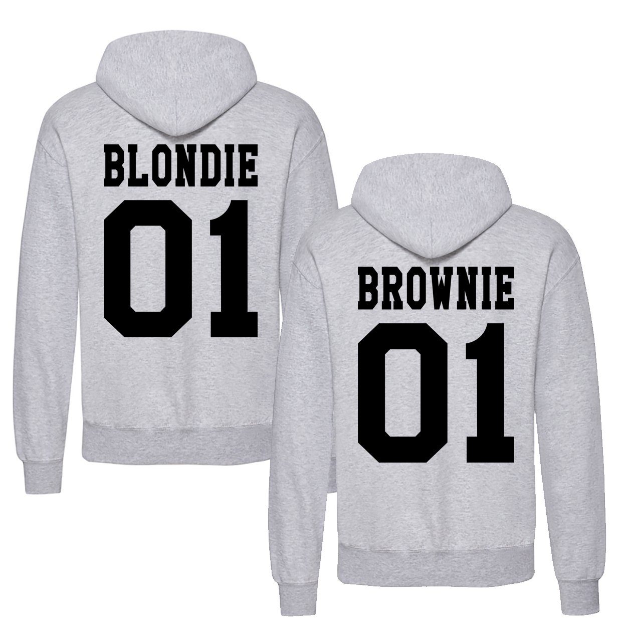 Modische Partner Look Beste Freunde Hoodies mit hochwertigem Blondie oder Brownie Aufdruck auf dem Rücken.