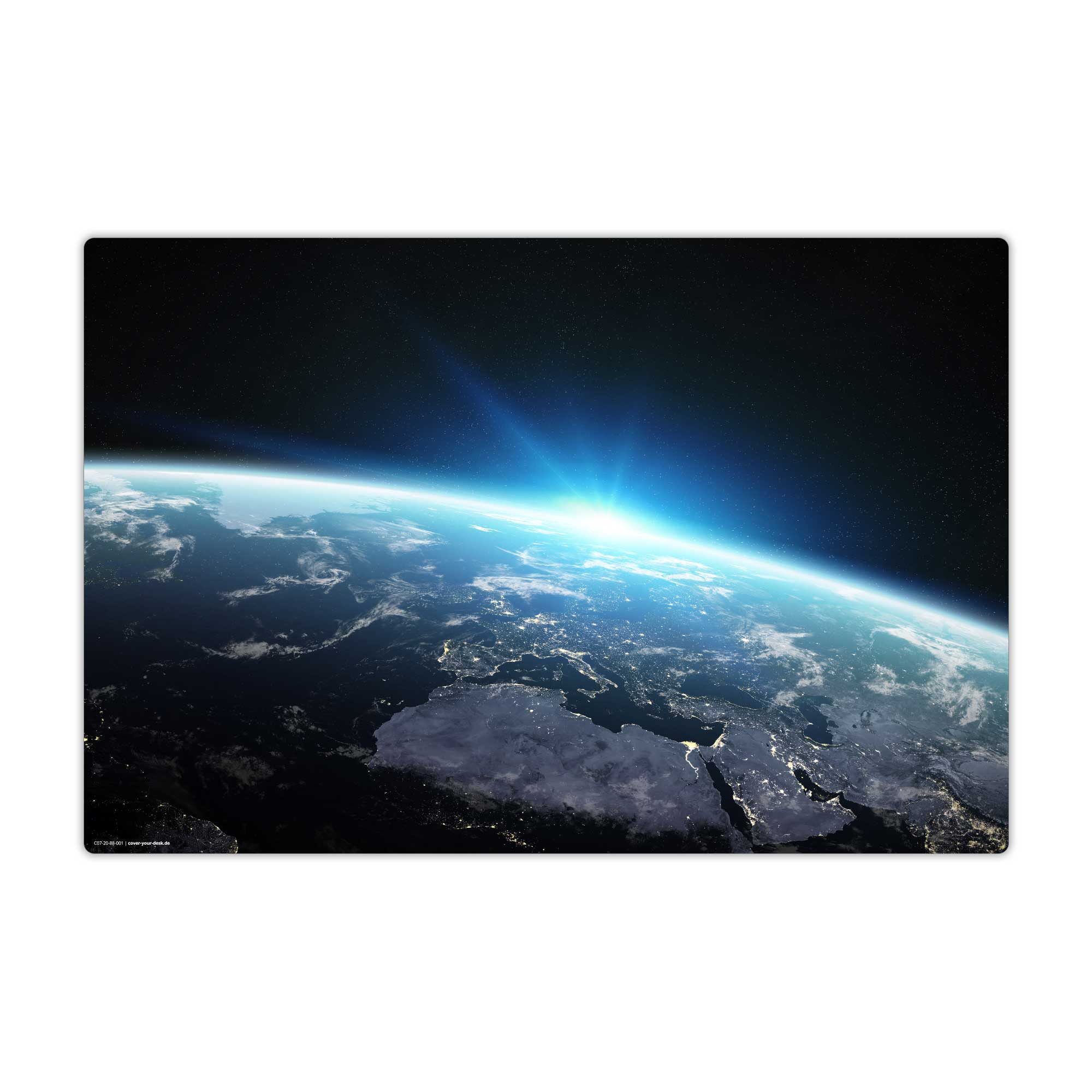 Eine absolut beeindruckende Schreibtischunterlage mit der Erdkugel. Im Hintergrund sieht man langsam die Sonne hervorstrahlen, was dem Bild einen tollen Effekt verleiht.