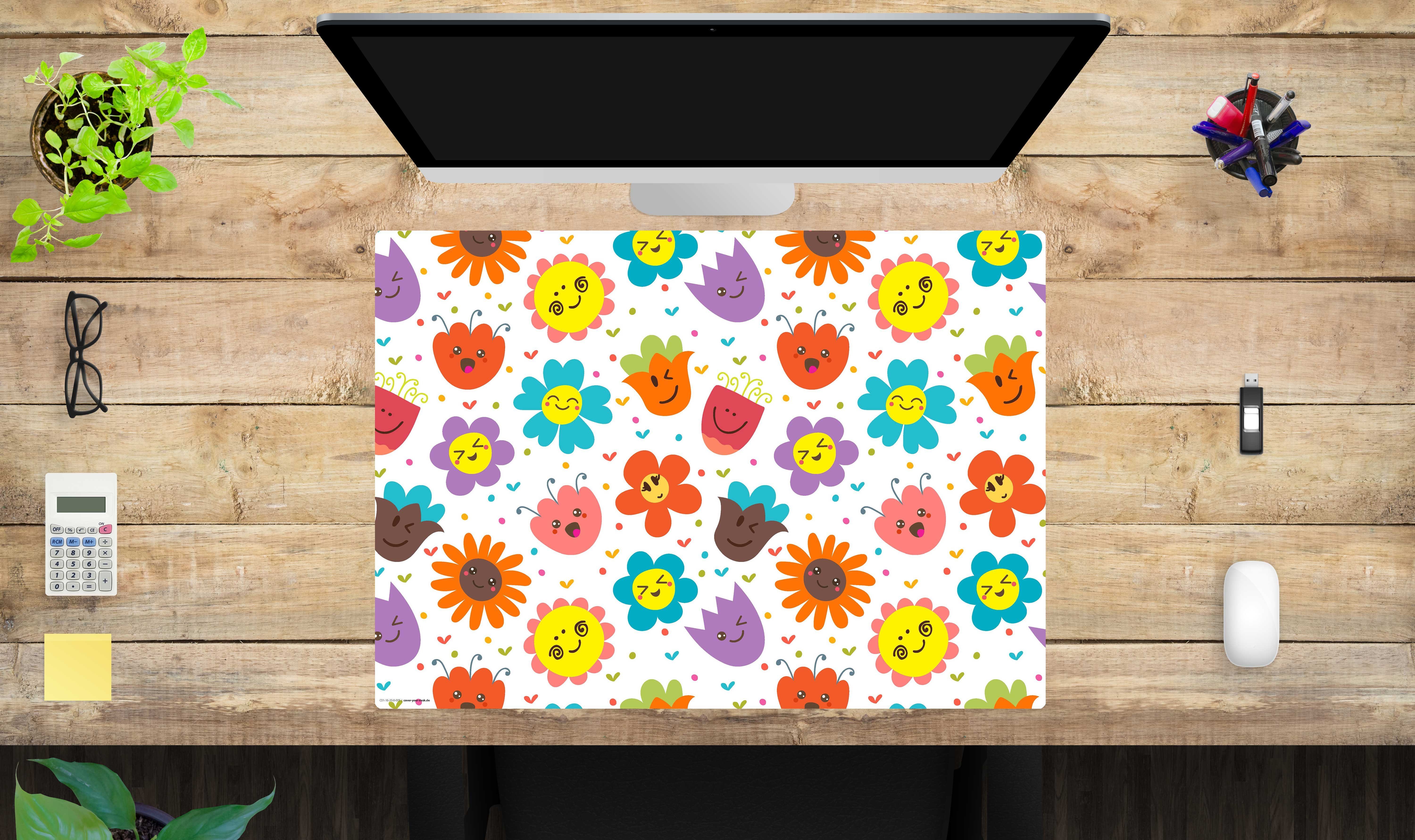 Schöne Schreibtischunterlage fürs Büro oder Zuhause! Dieses Motiv mit quirligen Blümchen verwandelt den Schreibtisch in einen Ort der Freude.