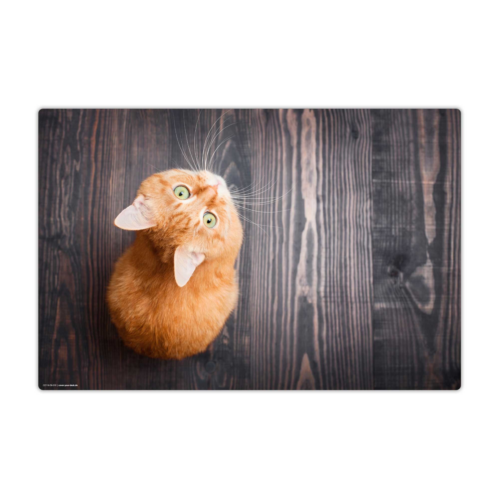 Schöne Schreibtischunterlage für Kinder und Erwachsene, mit süßer, oranger Katze, die nach oben schaut. Da freut sich das Katzenliebhaberherz!.
