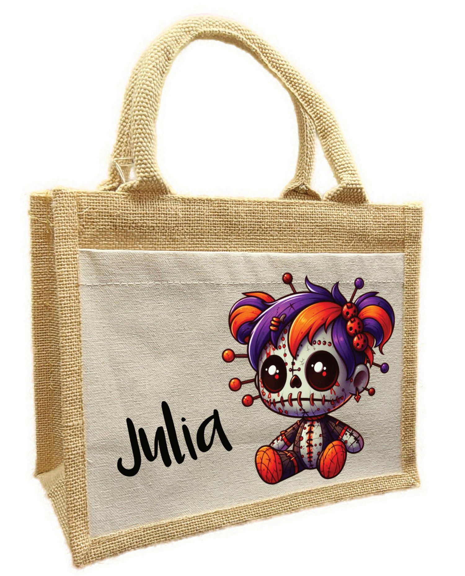 Korbtasche Halloween Tasche Voodoo, Sammeltasche aus Jute, 26 x 35 x 14 cm