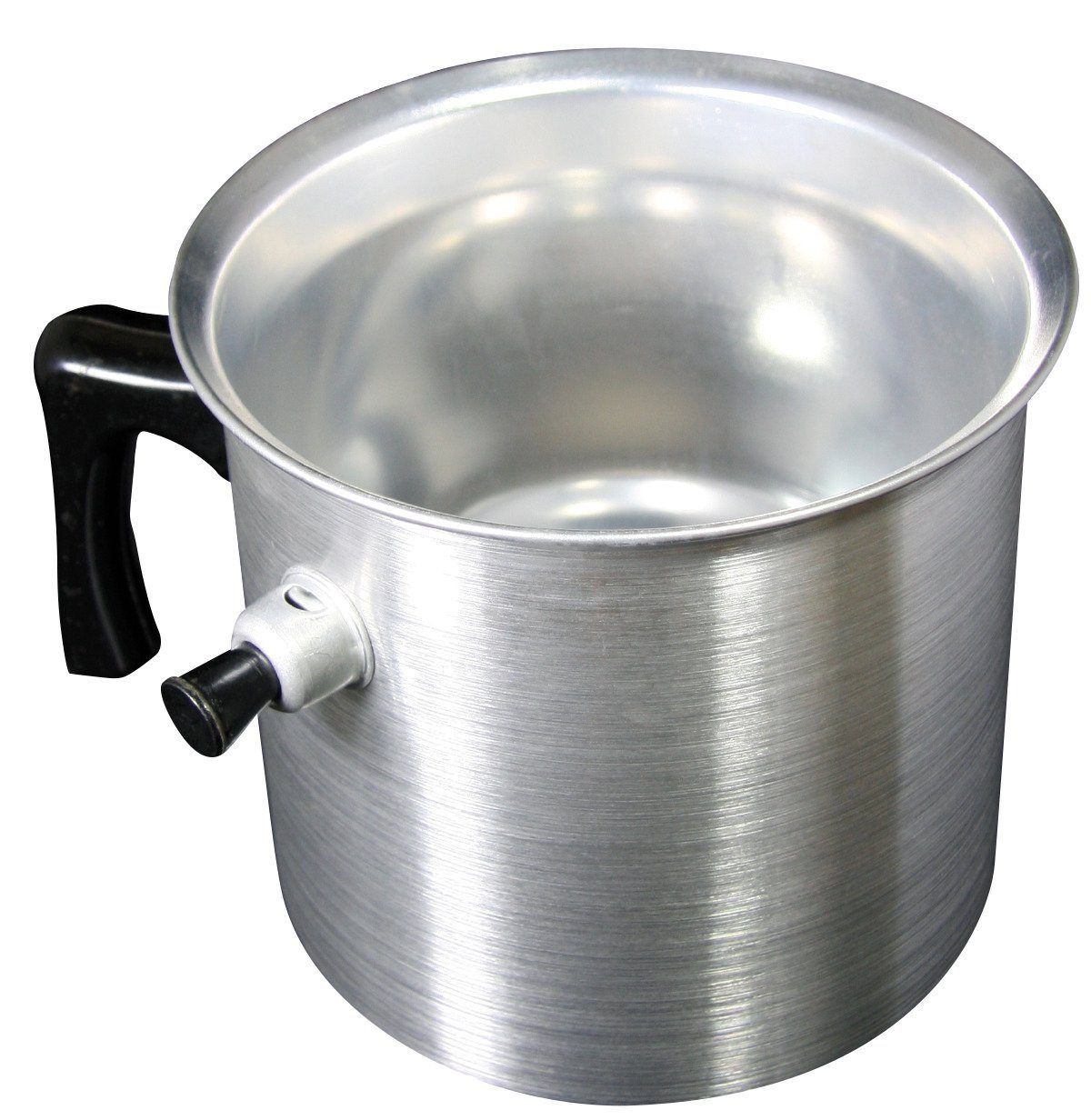 Der Universal-Schmelztopf mit einem Ø von ca. 13,2 cm und eine Höhe von ca. 12,5 cm hat ein Fassungsinhalt von 1 Liter. Er ist aus Aluminium mit einem Griff aus Kunststoff. Seitlich befindet sich eine Einfüllöffnung für die Befüllung mit Wasser. Die Öffnung wird mit einem mitgelieferten Stöpsel fest verschlossen. Nun kann auf der Herdplatte oder dem Gasfeld der Topf erhitzt werden. Eine sichere Sache ohne anbrennen oder überhitzen. Der Wasserstand sollte zwischendurch immer wieder kontrolliert und nachgefüllt werden.