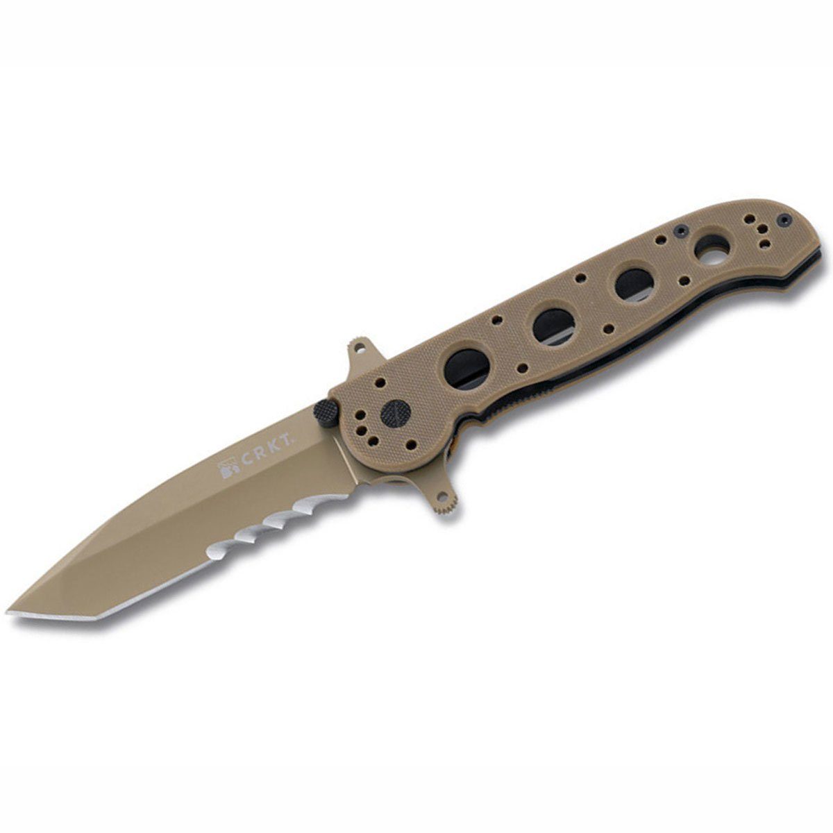 Das beliebte CRKT Design M16 ist jetzt auch in einer Serie mit rutschfesten und leichten G10-Griffschalen erhältlich, die bei allen Wetterbedingungen einen sicheren und komfortablen Griff bieten. Die zusätzliche Auto-Lawks-Sicherung verhindert ein versehentliches Lösen des Liners. Ein Hosenclip ermöglicht vier verschiedene Tragepositionen. Diese Tantoversion ist in der Desert-Ausführung erhältlich und verfügt über eine 8Cr14-Klinge mit Titan-Nitrid-Beschichtung und aggressiver Veff-Serration.