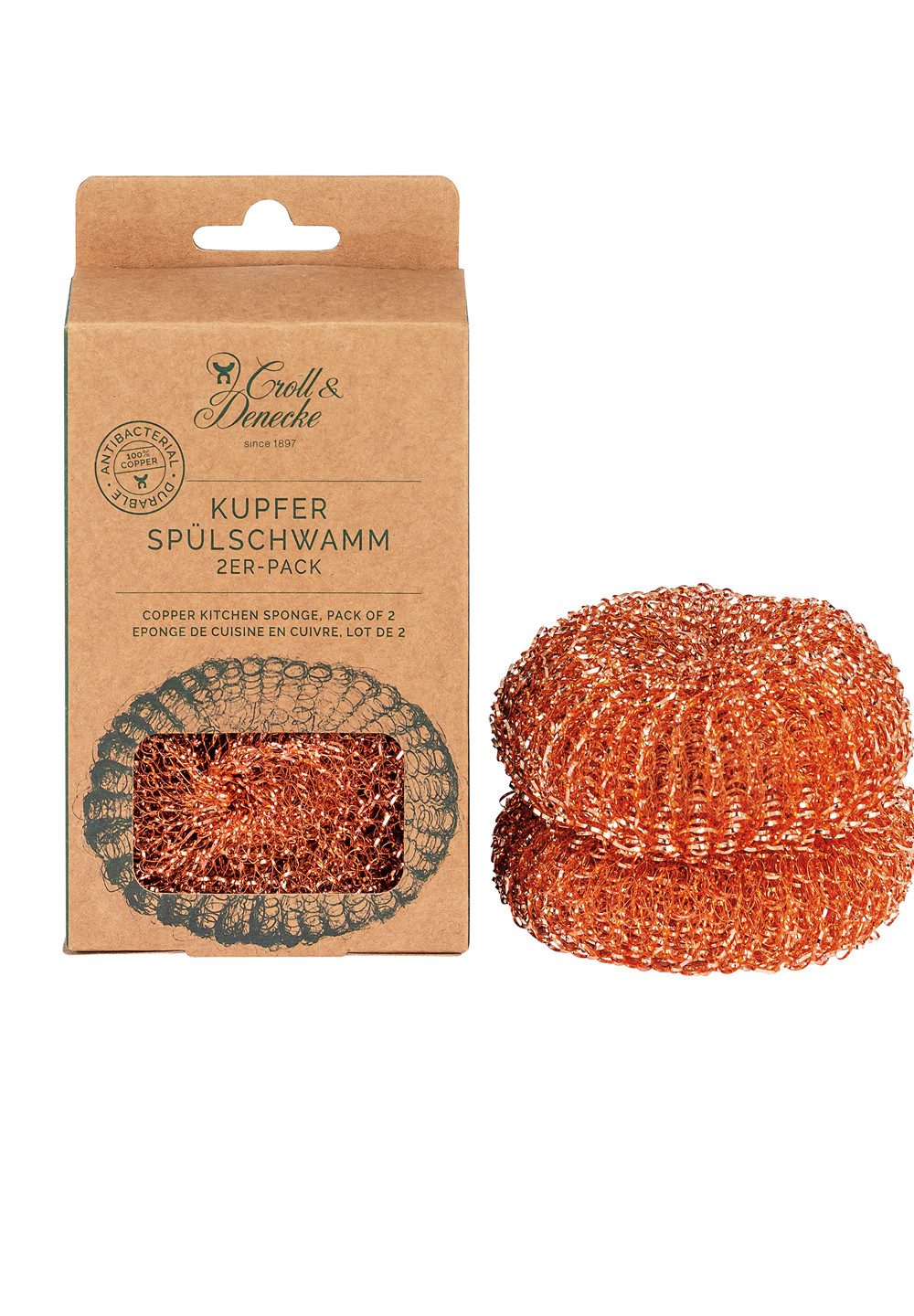 Kupfer ist ein nicht rostendes Weichmetall. Der Schwamm entfernt hartnäckigen Schmutz, ohne zu verkratzen. Die Anwendung erfolgt mit Wasser. Nicht auf Teflon verwenden. Waschbar bei 60 ° C im Beutel möglich. Plastikfrei und recycelbar.