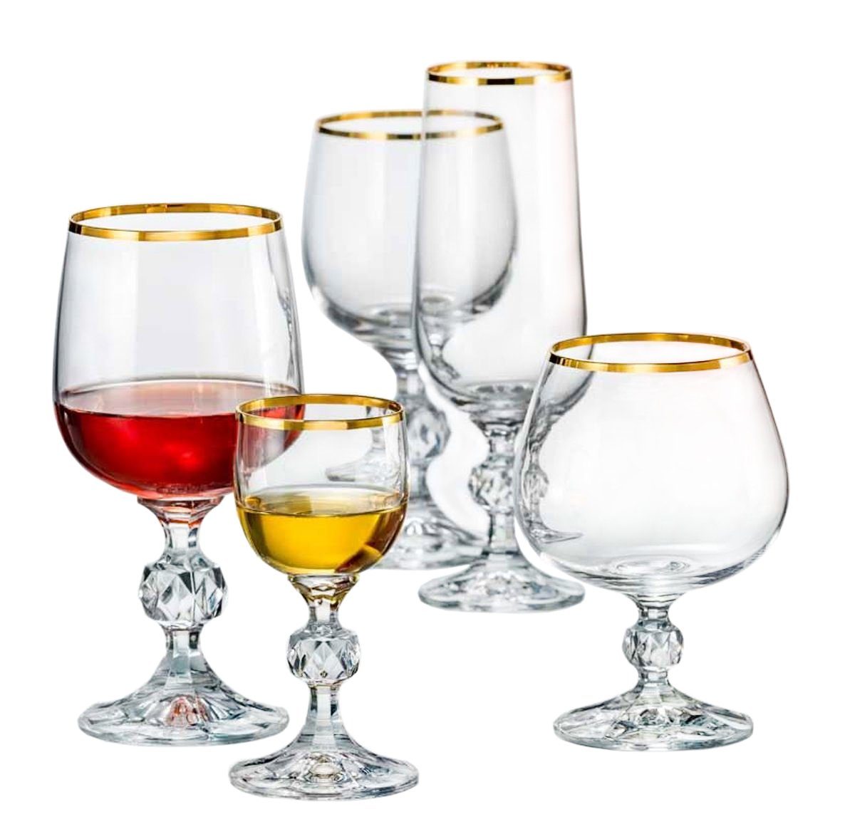Lieferumfang | 6 x Sektgläser, 6 x Weingläser, 6 x Cognacgläser, 6 x Likörgläser |