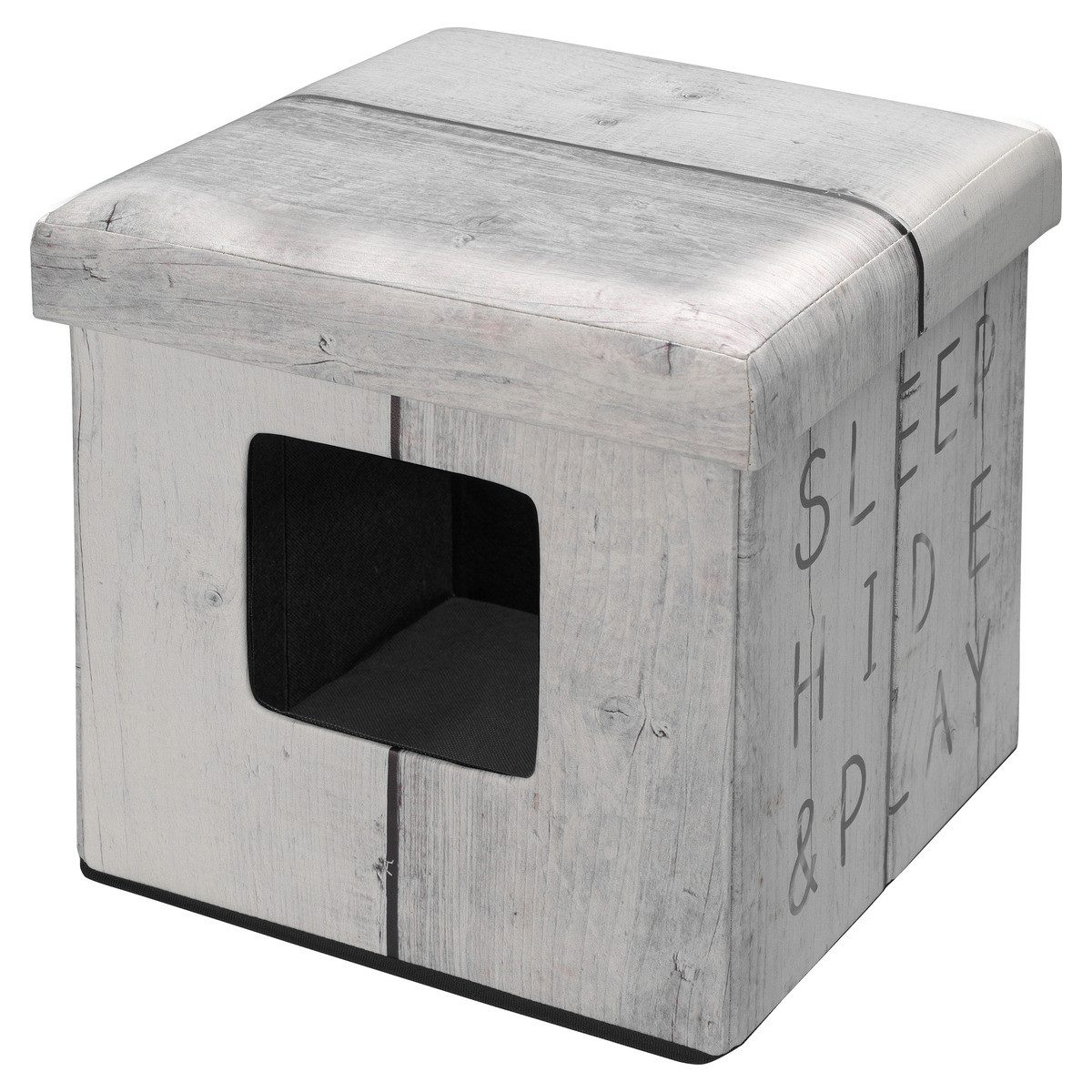 Diese schöne D&D Box Ottoman ? Sleep, Hide, Play ? ist ein tolles Versteck für Ihr Tier und zugleich eine nette Sitzgelegenheit für Sie und Ihr Haustier. Die robusten und langlebigen MDF-Platten sind schön verarbeitet und mit PU-Leder bezogen. Diese Box ist für Katzen geeignet.