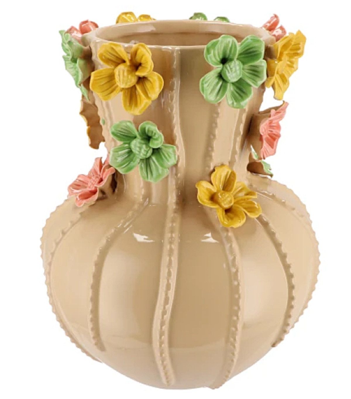 Verspielte Keramik Vase mit Blütenmotiv aus dem Hause Daan Kroumhout.