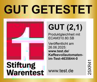 Testurteil von Stiftung Warentest vom 26.06.2025, Ausgabe 26.06.2025, Seite www.test.de/Kaffeevollautomaten-im-Test-4635644-0/: "GUT GETESTET (2,1) - Produktgleich mit ECAM310.80.SB"