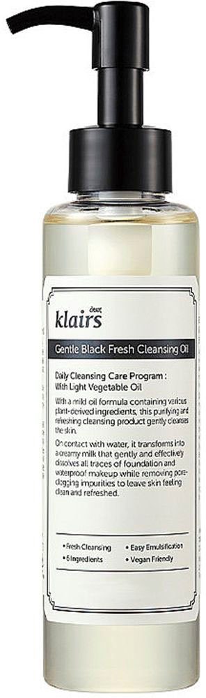 Endlich ist sie da, die neue parfümfreie und leichtere Version des weltweiten Bestellers Klairs Gentle Black Deep Cleansing Oil. Das die neue parfümfreie Version kommt mit der identischen Reinigungsleistung und dem wunderbaren Namen Dear Klairs Gentle Black Fresh Cleansing Oil daher. Es besteht wie schon sein Namenspartner aus verschiedenen Pflanzenölen und besitzt hautverbessernde Eigenschaften! Dieser tägliche, parfümfreie Ölreiniger ist leicht und hat ein frisches, nicht öliges Finish. Das Dear Klairs Gentle Black Fresh Cleansing Oil entfernt effektiv alle Make-up-, Öl- und Schmutzreste und entfernt sanft abgestorbene Hautzellen und steuert die Talgproduktion. Mit einfachen und sanften Inhaltsstoffen wie Sonnenblumenöl, Traubenkernöl, Jojobaöl und schwarzem Johannisbeeröl spendet es der Haut Feuchtigkeit und gleicht Wasser und Ölstand der Haut aus. Es ist auch reich an Vitamin A, B, C und hat starke antioxidative Eigenschaften, um die Haut gesund zu halten, während die Haut hydratisiert bleibt. Empfohlen für fettige Mischhaut und alle diejenigen, die ein öliges Gefühl nach der Verwendung eines Ölbasierten Reinigers störend empfinden. Es hinterlässt keinen öligen Film auf der Haut auch ohne Double Cleansing.