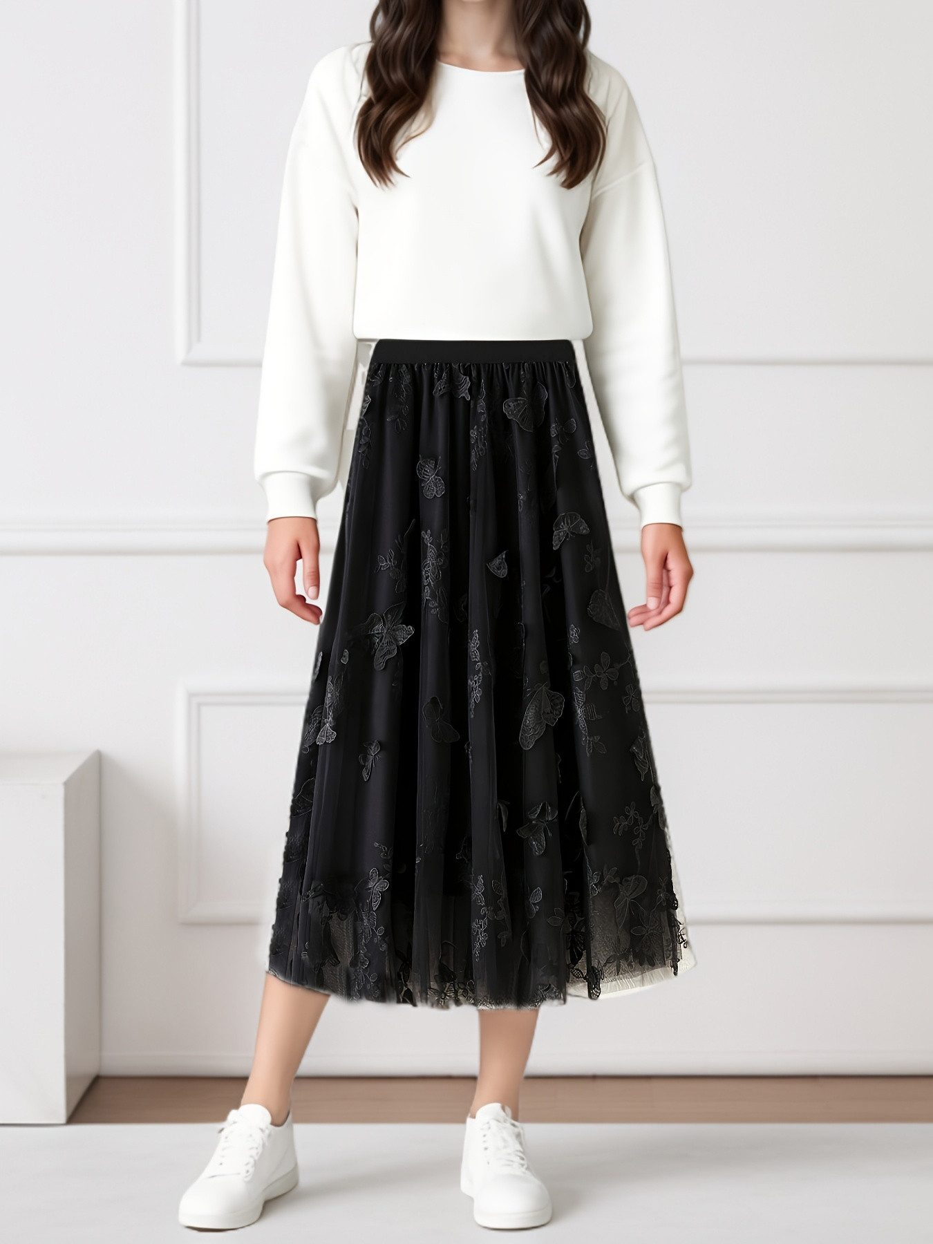 Dieser A-Linien-Midirock kann als Arbeitsrock getragen werden, Sie können ihn auch zu einem Picknick, auf Reisen oder sogar als Skaterrock tragen.