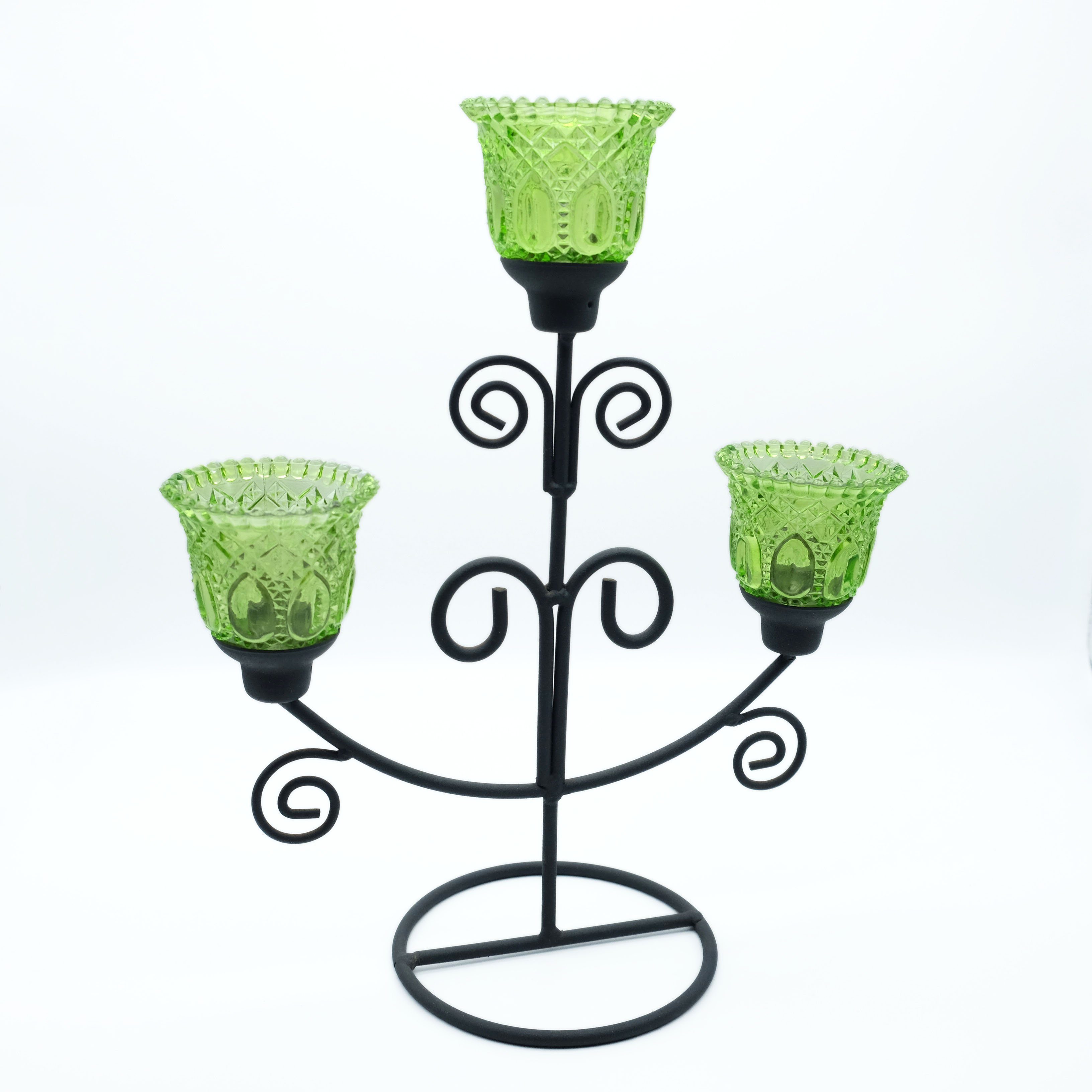 Kerzenständer Teelichtständer Metall und Glas dreiflammig