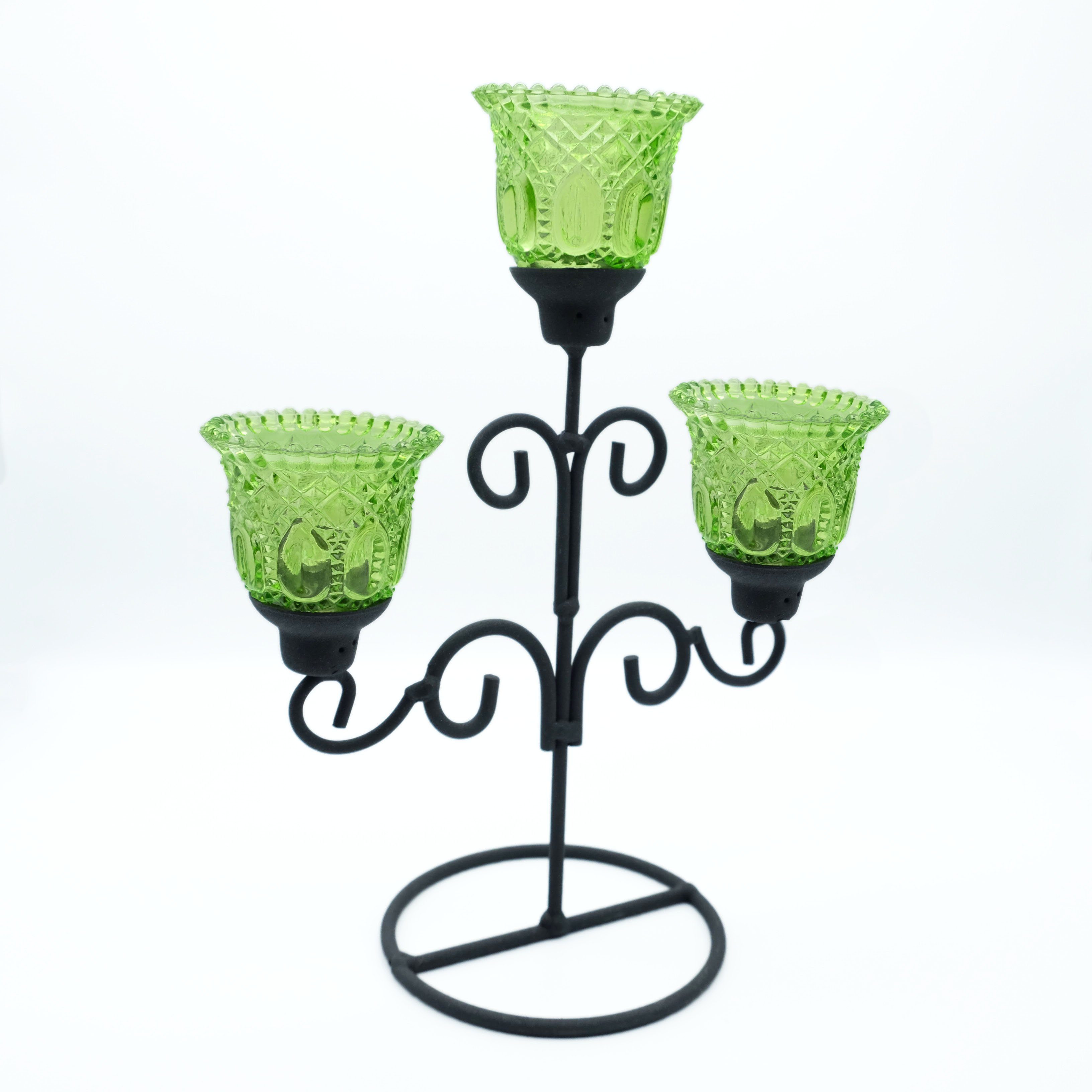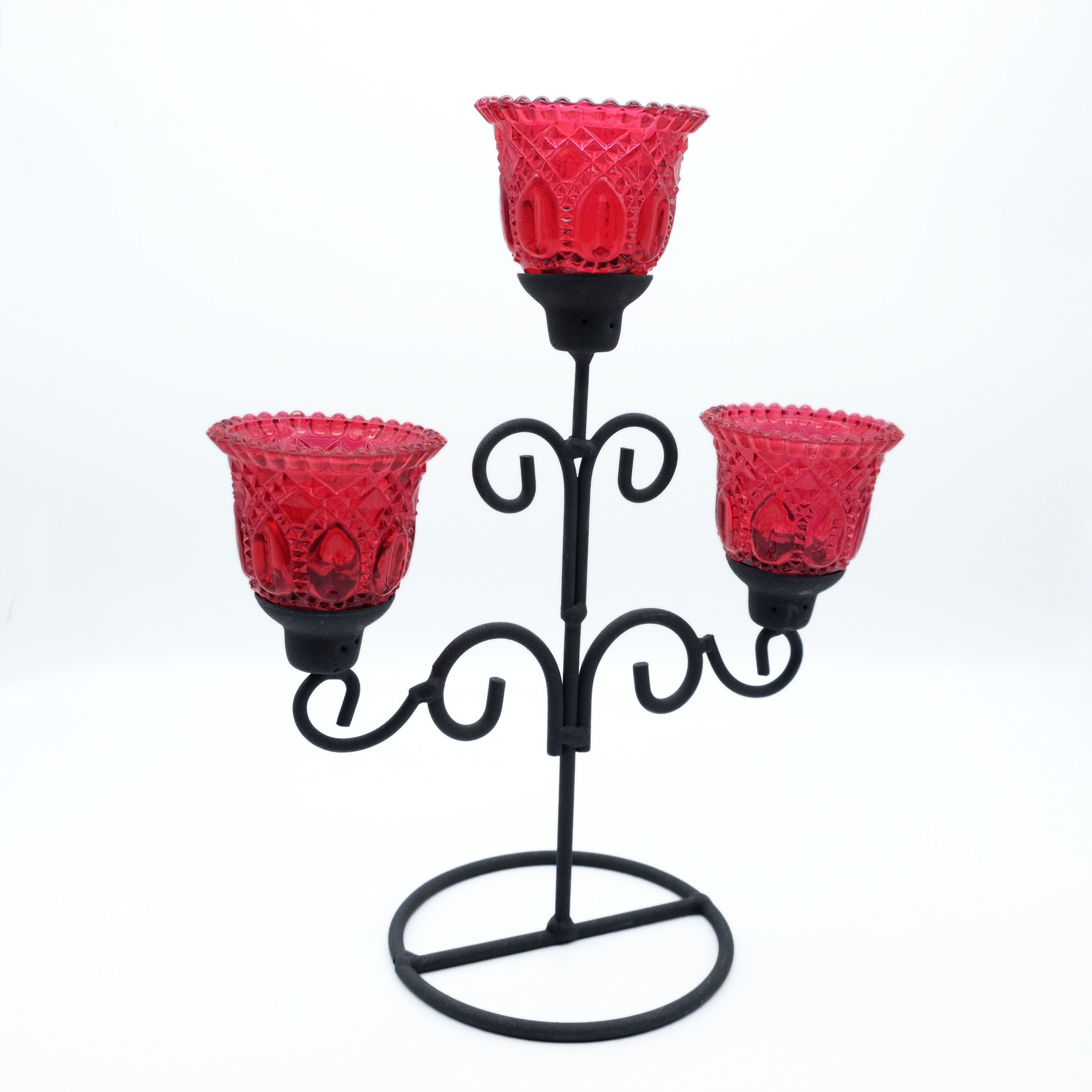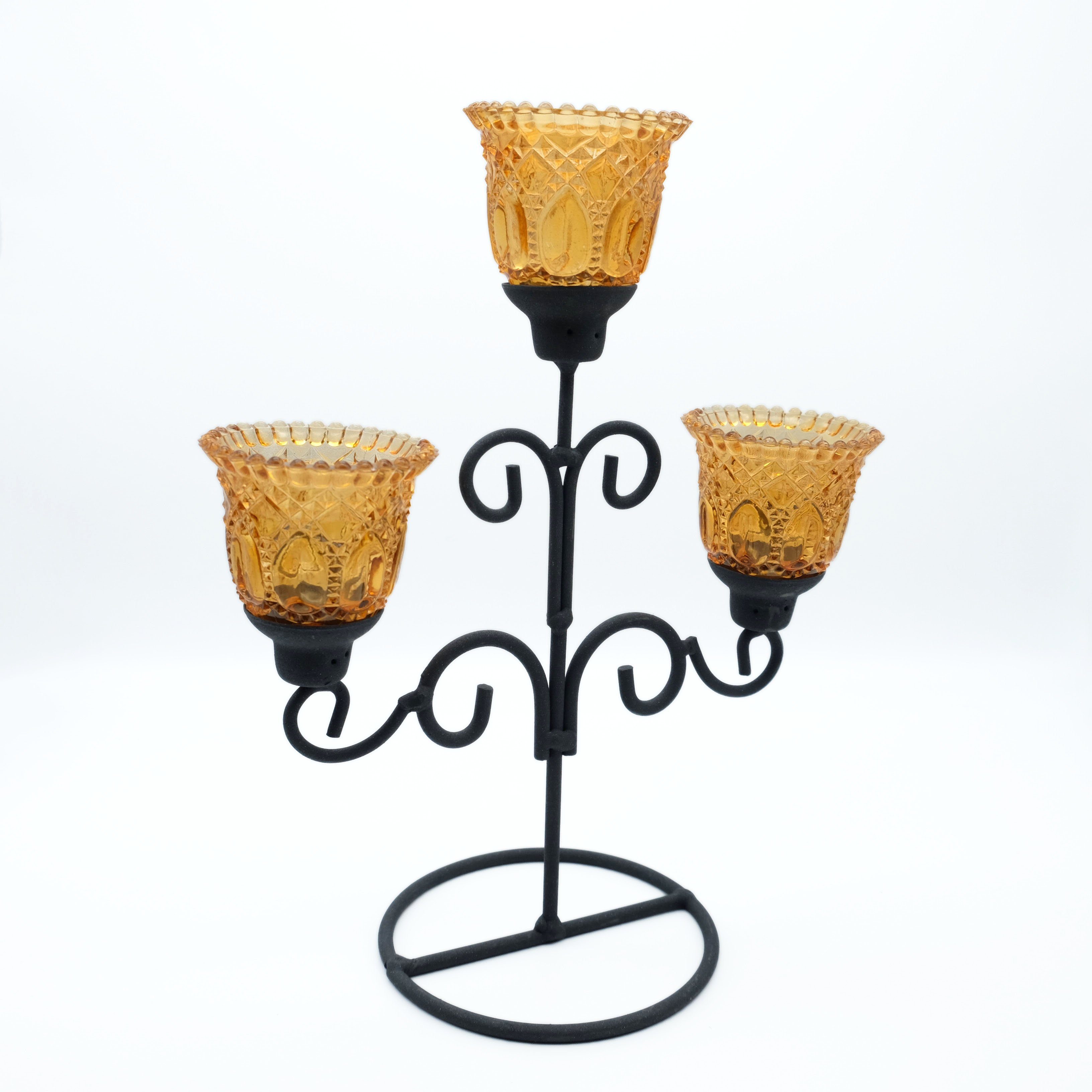Kerzenständer Teelichtständer Metall und Glas dreiflammig