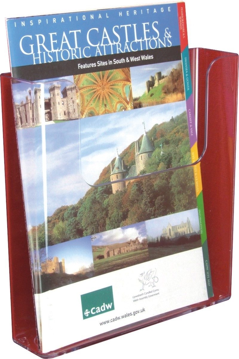 • Praktische Prospekthalter aus glasklarem Polystyrol mit flacher Rückseite, eignet sich bestens für die Präsentation von A5 Formaten hoch, zur Wandmontage