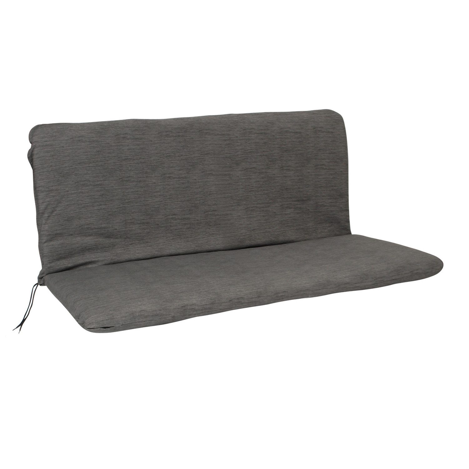 Polsterauflage ARIZONA mit Sitz- und Rückenteil für Bank 2-sitzer 98cm, anthrazitgrau. Materialzusammensetzung Bezug: 70% Baumwolle, 30% Polyester. Die Füllung kann mittels Reissverschluss aus dem Bezug genommen werden, der Bezug ist waschbar. Die Auflage wird mit Bändern im Knick an der Bank befestigt. Die Auflage ist universell verwendbar für 2-sitzer Bänke mit etwa 100cm Sitzbreite und Sitz- und Rückenmaßen wie unten angegeben. Maße: Breite 98cm, Höhe Rückenteil: 44cm, Tiefe Sitzteil: 44cm, Dicke 7cm.