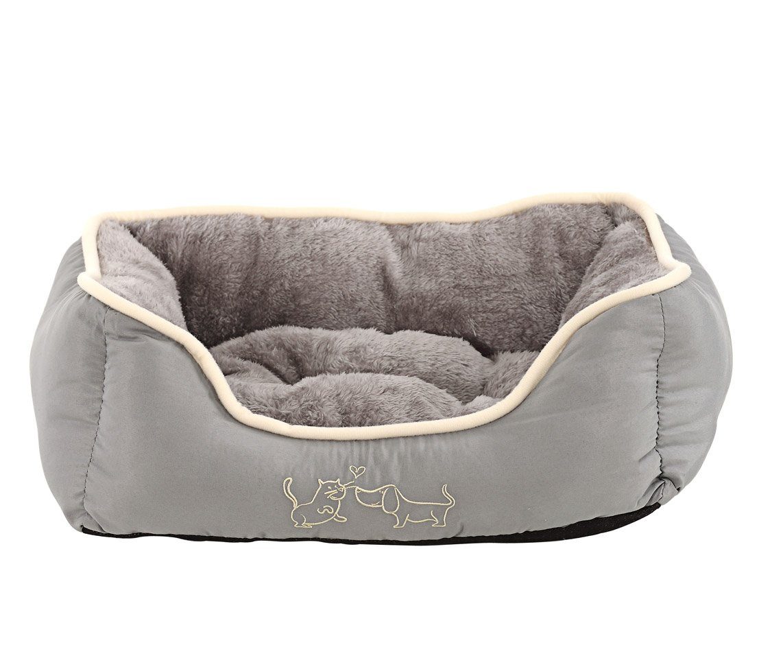 Das Dehner Lieblinge Kuschelbett Sammy ist der ideale Rückzugsort für Ihren Hund oder Ihre Katze. In diesem kuschelig weichen Katzen- und Hundebett fühlt sich Ihr vierbeiniger Liebling sicher und geborgen. Das Kuschelbett aus pflegeleichtem Polyester ist bis 30 °C in der Maschine waschbar. Besonders hübsch ist die kleine Einstickung an der Vorderseite mit einem niedlichen Pärchen aus Hund und Kätzchen. Wer weiß, vielleicht lädt Ihr Vierbeiner ja auch seinen tierischen Freund ein, dieses bequeme Hundebett bzw. Katzenbett mit ihm zu teilen? Im Inneren ist das gemütliche Bett für Hunde und Katzen mit weichem Plüsch ausgekleidet und ein herausnehmbares Liegekissen mit plüschiger Oberfläche lädt zum Träumen, Ausruhen und Kuscheln ein. Natürlich ist auch dieses Wohlfühlkissen aus Polyester bis 30 °C maschinenwaschbar. Dieses Katzenbett von Dehner Lieblinge wird mit Sicherheit zum Lieblingsplatz Ihres Hundes oder Ihrer Katze werden. Dank des rutschfesten Bodens steht das Hundebett auch auf glatten Bodenbelägen wie Parkett oder Fliesen sicher ohne wegzurutschen. Das gemütliche Kuschelbett gibt es in verschiedenen Größen. Wählen Sie einfach die passende für Ihre Katze oder Ihren Hund aus!