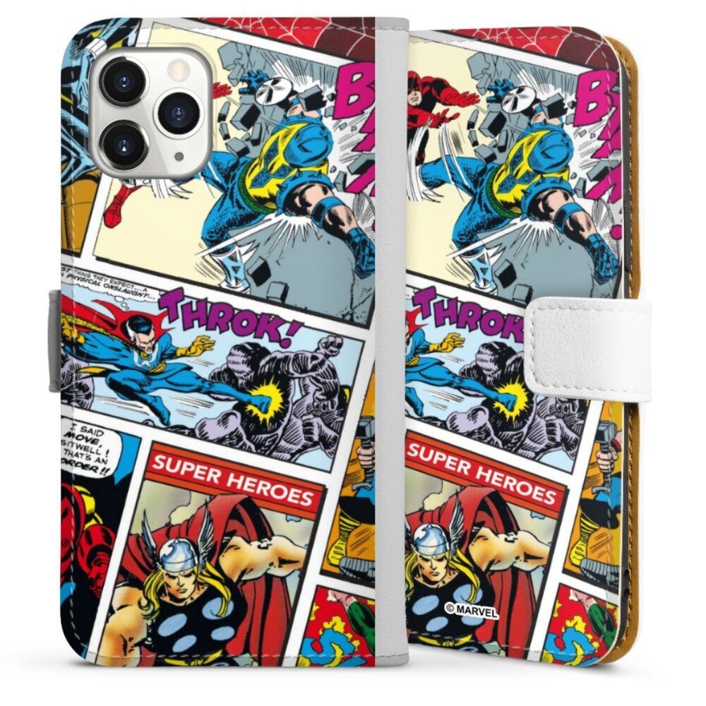 DeinDesign Handyhülle Marvel Retro Comic Blue, Apple iPhone 11 Pro Hülle Handy Flip Case Wallet Cover