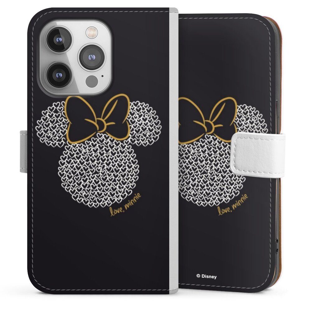 DeinDesign Handyhülle Minnie Mouse Disney Muster Minnie Black and White, Apple iPhone 14 Pro Hülle Handy Flip Case Wallet Cover