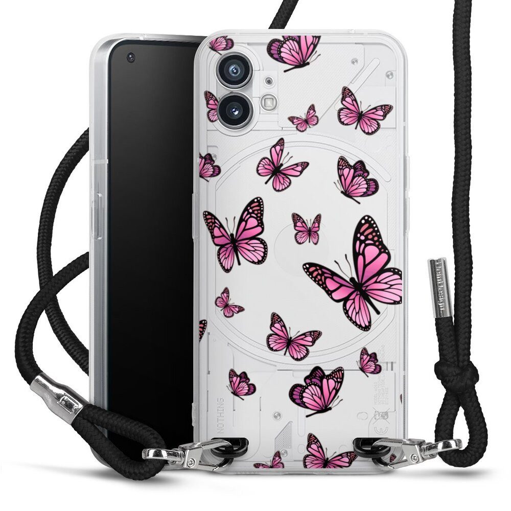 DeinDesign Handyhülle Schmetterling Muster Motiv ohne Hintergrund Schmetterlinge Pink, Nothing Phone 1 Handykette Hülle mit Band Case zum Umhängen