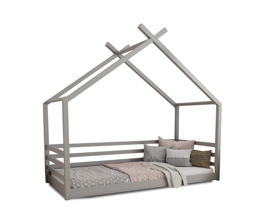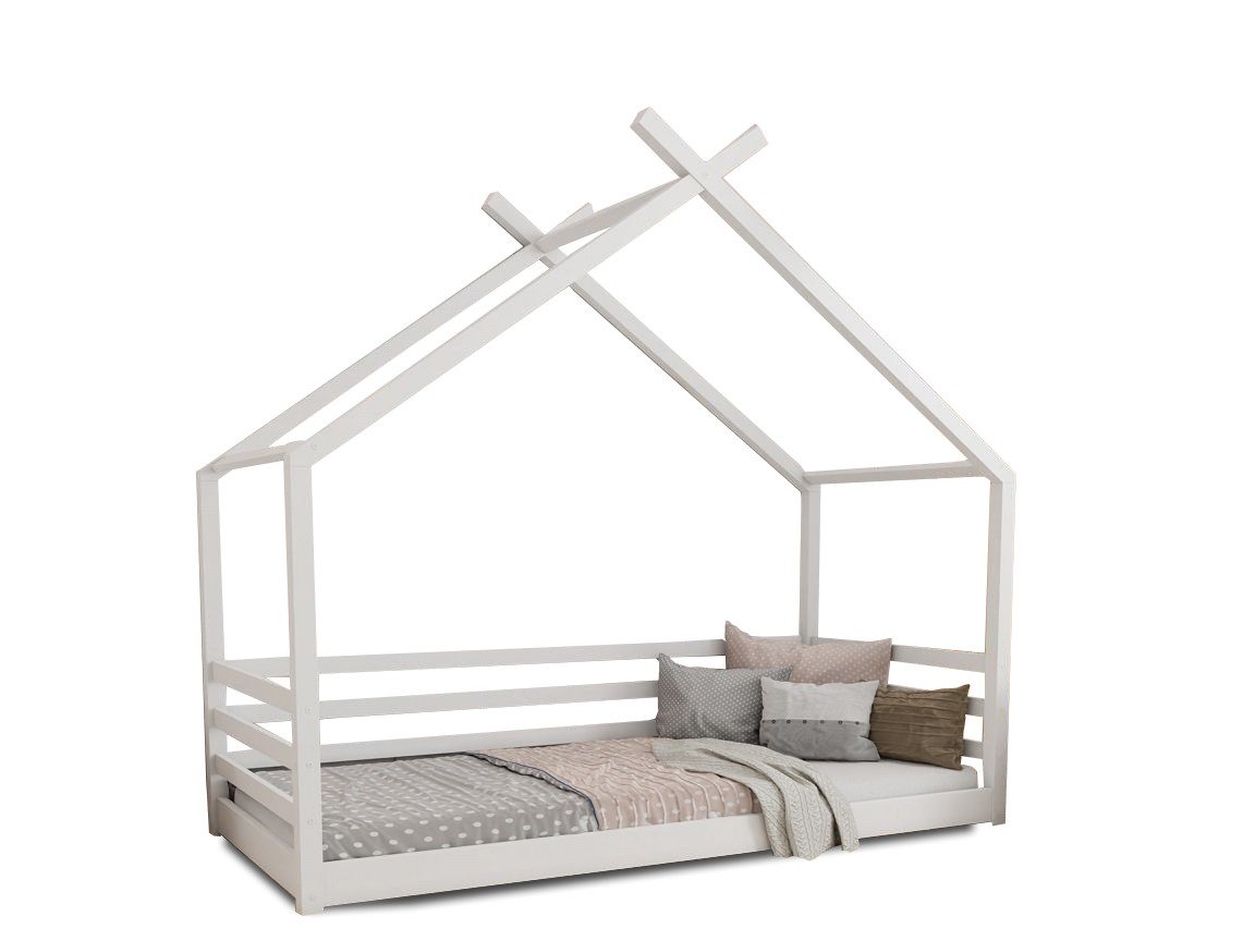 Kinderbett Hausbett für 1 Kind MOON Standard Unser Hausbett MOON wird nach unseren Prinzipien angefertigt – die Matratze befindet sich niedrig über dem Boden. Ihr Kind kann selbständig hinein- und heraussteigen, ohne das Risiko, sich zu verletzen oder herunterzufallen. Die ungewöhnliche Form sorgt dafür, dass Kinder das Hausbett nicht nur nachts, sondern auch tagsüber sehr gerne nutzen, weil es ein hervorragender Ort für kreatives Spielen ist. Wenn es Ihnen daran liegt, dass Ihr Kind in seinem eigenen Zimmer schläft, ist unser Hausbett perfekte Auswahl um das Kind zu ermutigen, das Schlafen in seinem eigenen Zimmer zu akzeptieren. Die Bettkonstruktion bietet zahlreiche Möglichkeiten es zu dekorieren, also lassen Sie Ihrer Fantasie freien Lauf und machen Sie es zu einem gemütlichen und sicheren Schlafplatz, den Ihr Kind gerne nutzt. Unser Hausbett MOON wird aus Kiefernholz angefertigt. Natürliches Material, solide Konstruktion und präzise Verarbeitung garantieren eine sichere und dauerhafte Nutzung des Bettchen für viele, viele Jahre. Das Bett ist in weiß und aschgrau verfügbar. Die Farben unserer Grafik können vom original leicht abweichen. Bei allen Farben ist die Holzstruktur leicht sichtbar. Lieferumfang: Ein Bett mit Lattenrost aus Flex Birkensperholz, ohne Matratze, ohne Dekoration. Gewährleistung 2 Jahre. Möbel werden zerlegt in Paketen zur Selbstmontage geliefert.
