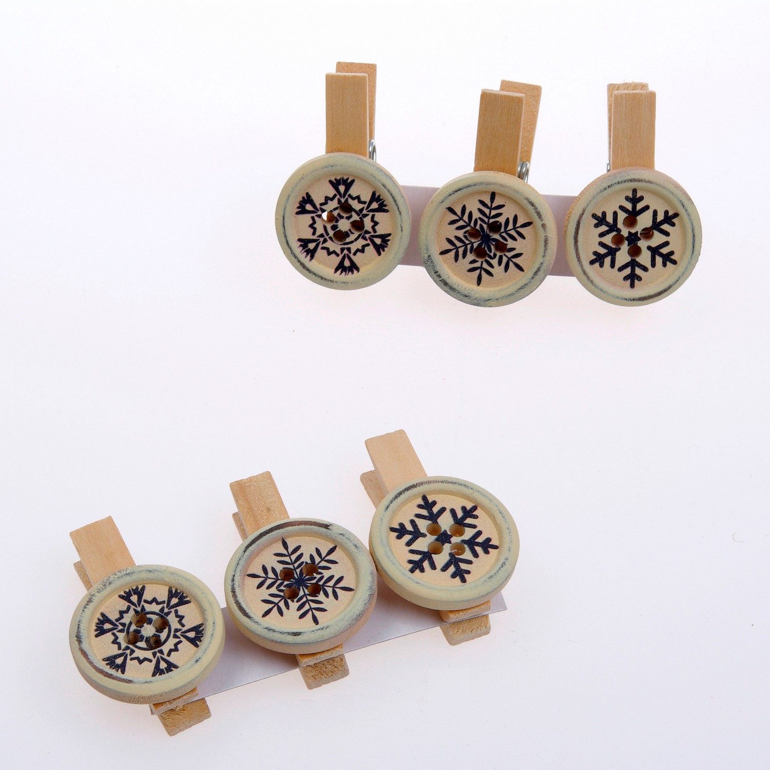 Diese liebevoll gestalteten Dekoklammern aus naturfarbenem Holz sind mit runden Holzscheiben verziert, die jeweils mit verschiedenen Eiskristall-Motiven bedruckt sind. Die detailreichen Schneeflocken-Designs machen diese Holzklammern zur perfekten Wahl für die Weihnachtszeit und den Advent. Ob als stilvolle Befestigung von Adventskalender-Tütchen, zur Tischdekoration mit Servietten oder Namenskarten, als Anhänger für Geschenke oder als kreatives Element für DIY-Projekte – diese Klammern bringen rustikale Gemütlichkeit und winterlichen Charme in jede Dekoration. Die Kombination aus Naturmaterial und feinem Druck schafft eine harmonische Verbindung von traditioneller und moderner Weihnachtsdeko.