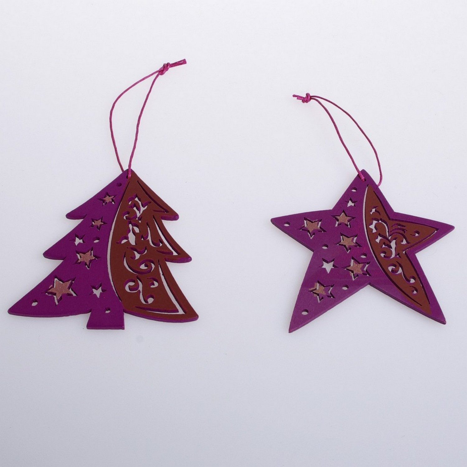 Deko AS Dekoobjekt Baumhänger Stern und Tanne - lila - 9 cm - 24 Stück - 91143 40