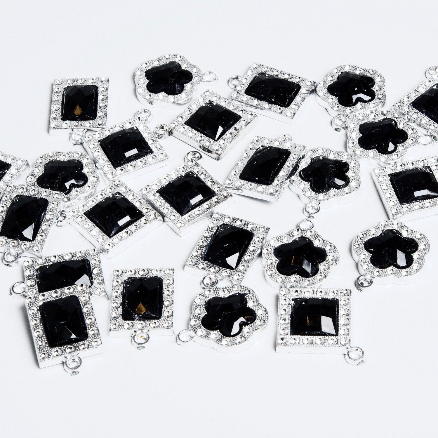 Für besondere Anlässe benötigt man auch eine etwas opulentere Deko. Die Schmucksteine mit den silberfarbenen Rahmen und em schwarzen Dekostein sind wunderbar geeignet um ein schönes Fest in Szene zu setzen. Die Dekosteine sind in drei verschiedenen Formen sortiert und können sowohl als Streudeko, aber auch zum Auffädeln benutzt werden.