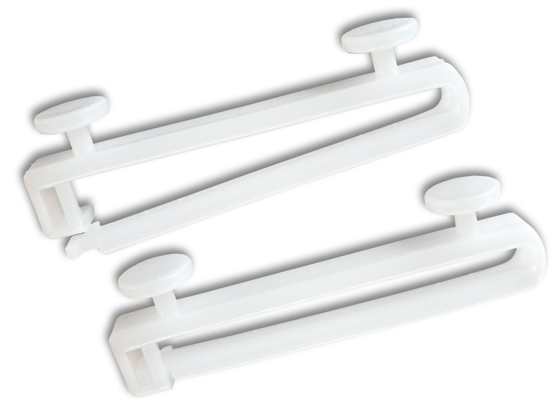 Schlaufengleiter mit 10 mm Köpfen und verschließbaren Haken / Schlaufeneinsatz in weiß, Kunststoff, 100% Made in Germany
