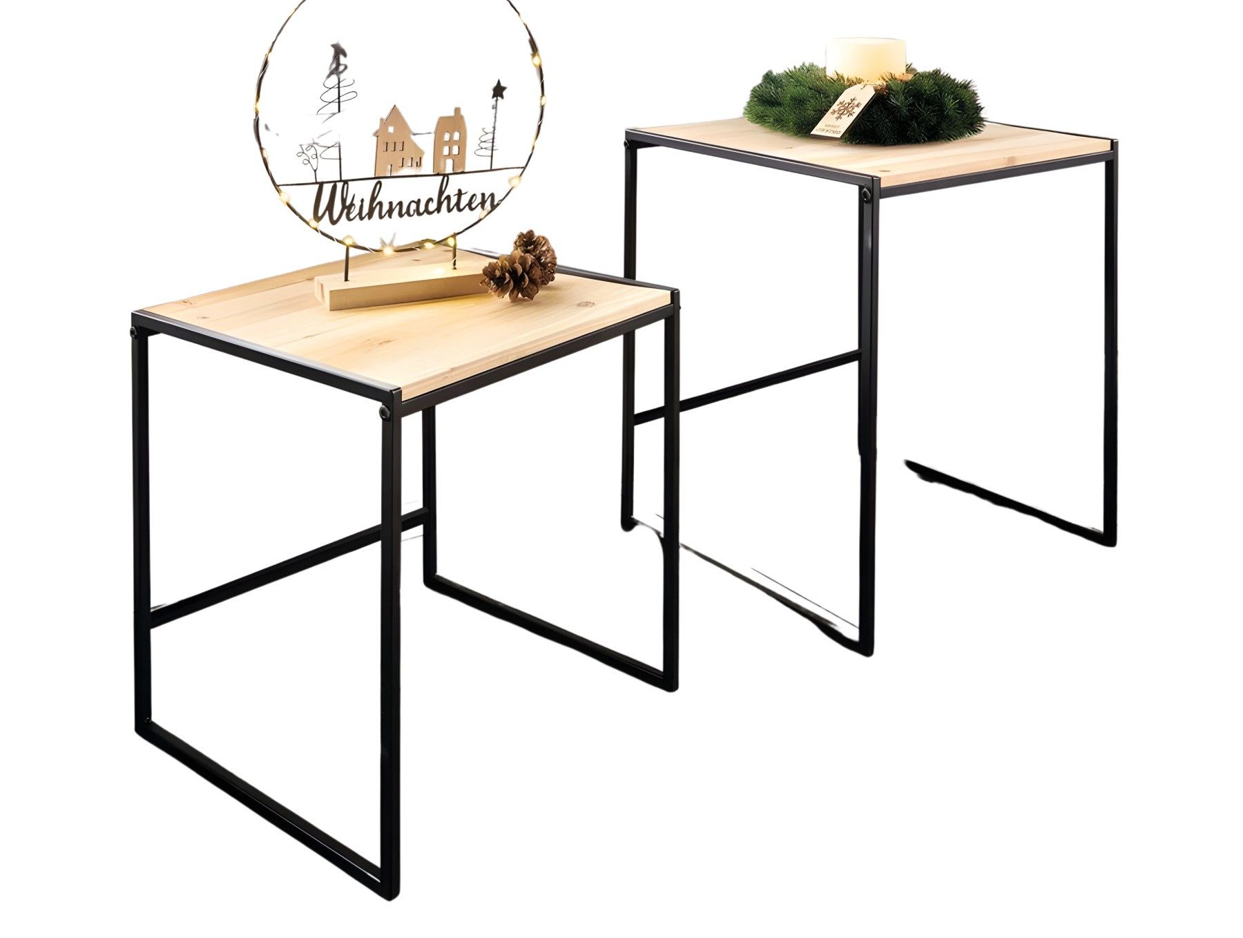 Die Kombination aus dem mattschwarzen Gestell und der Holzplatte in Natur macht diese Couchtische zu einem attraktiven Blickfang. Diese Farbgebung passt zu einer Vielzahl von Einrichtungsstilen, von modern bis industrial, und verleiht jedem Raum eine frische und ansprechende Note.