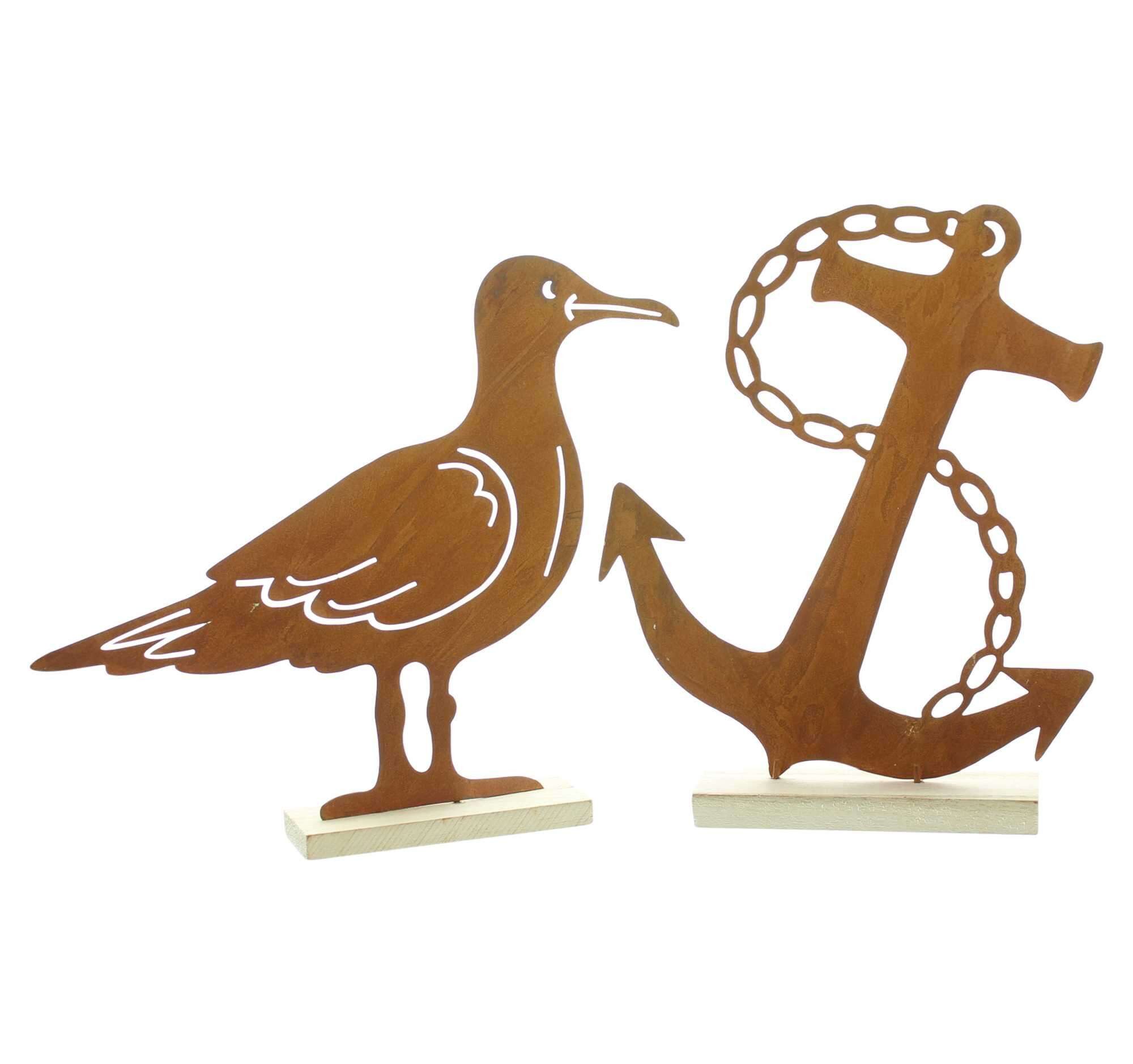 Dekofiguren "Anker & Möwe" im 2er Set – Maritime Akzente im angesagten Rost-Look