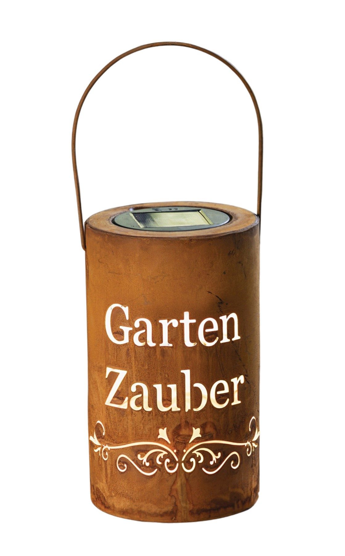 Verleihen Sie Ihrem Garten oder Balkon eine zauberhafte Atmosphäre mit unserer Solar-Laterne "Gartenzauber". Diese einzigartige Laterne ist nicht nur eine Lichtquelle, sondern auch ein dekoratives Kunstwerk. Hergestellt aus robustem Metall mit einem authentischen Echtrost-Finish, fügt sich diese Laterne nahtlos in jede Gartenlandschaft ein.