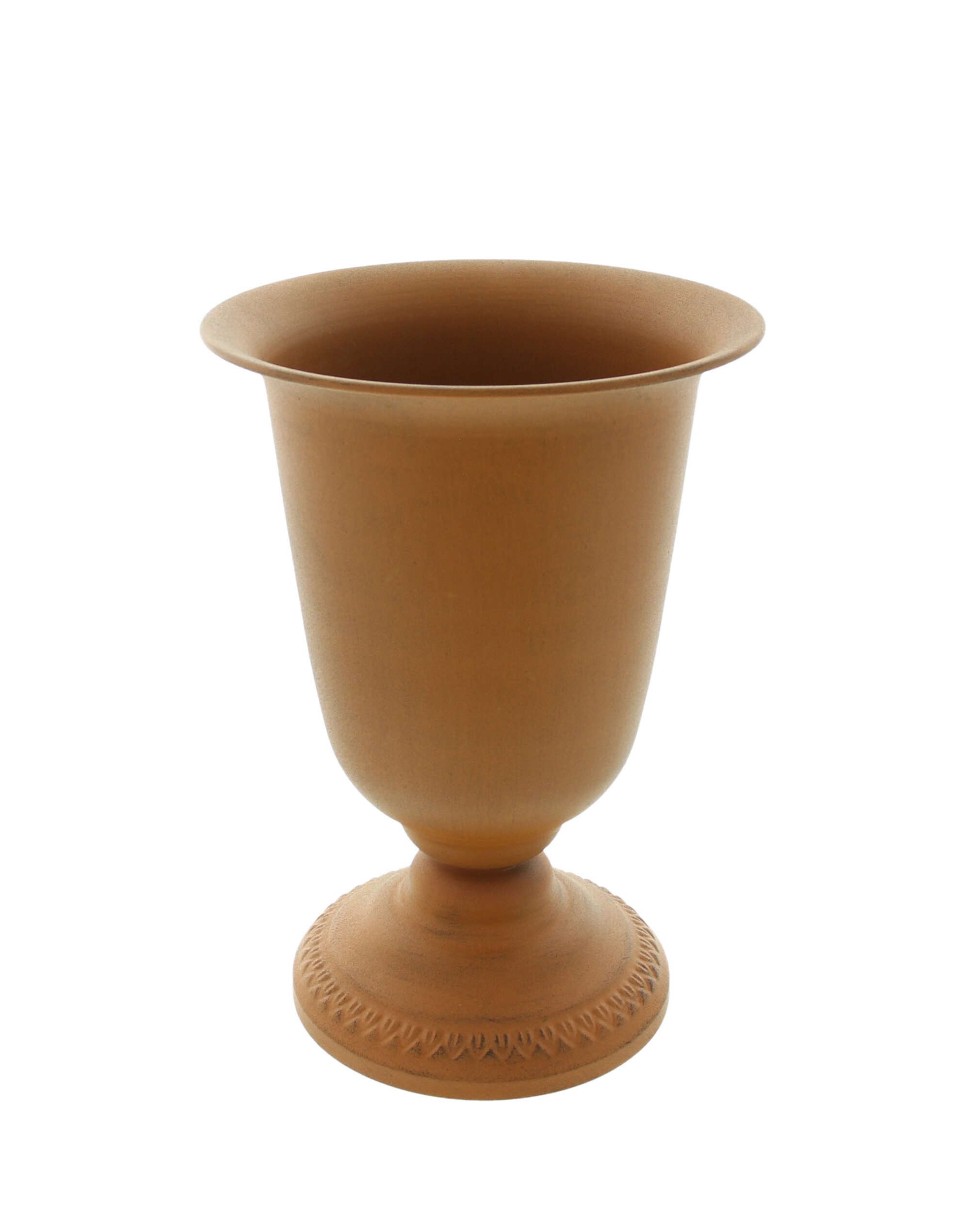 Gefertigt aus robustem Metall mit rostbrauner Lackierung, veredelt mit einem dezenten Antikfinish, vereint dieses Pflanzgefäß traditionelle Formensprache mit moderner Rost-Optik. Der fein gearbeitete Sockel und die schlichte Oberfläche mit zarter Patinierung verleihen dem Pflanzpokal Charakter und eine hochwertige Ausstrahlung – ideal für romantische oder mediterrane Gartengestaltungen.
