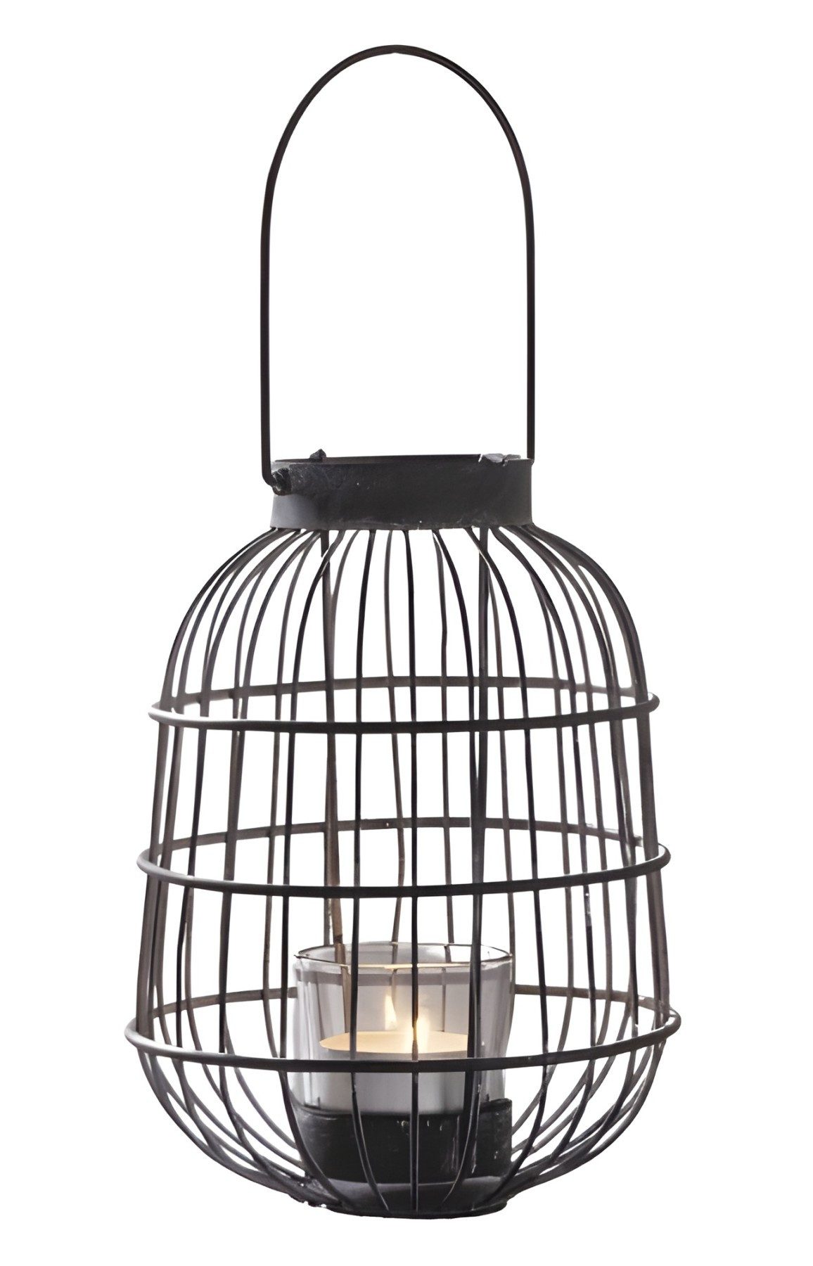 Windlicht "Laterne" aus grauem Metall, weiß gekalkt, auch zum Aufhängen geeignet