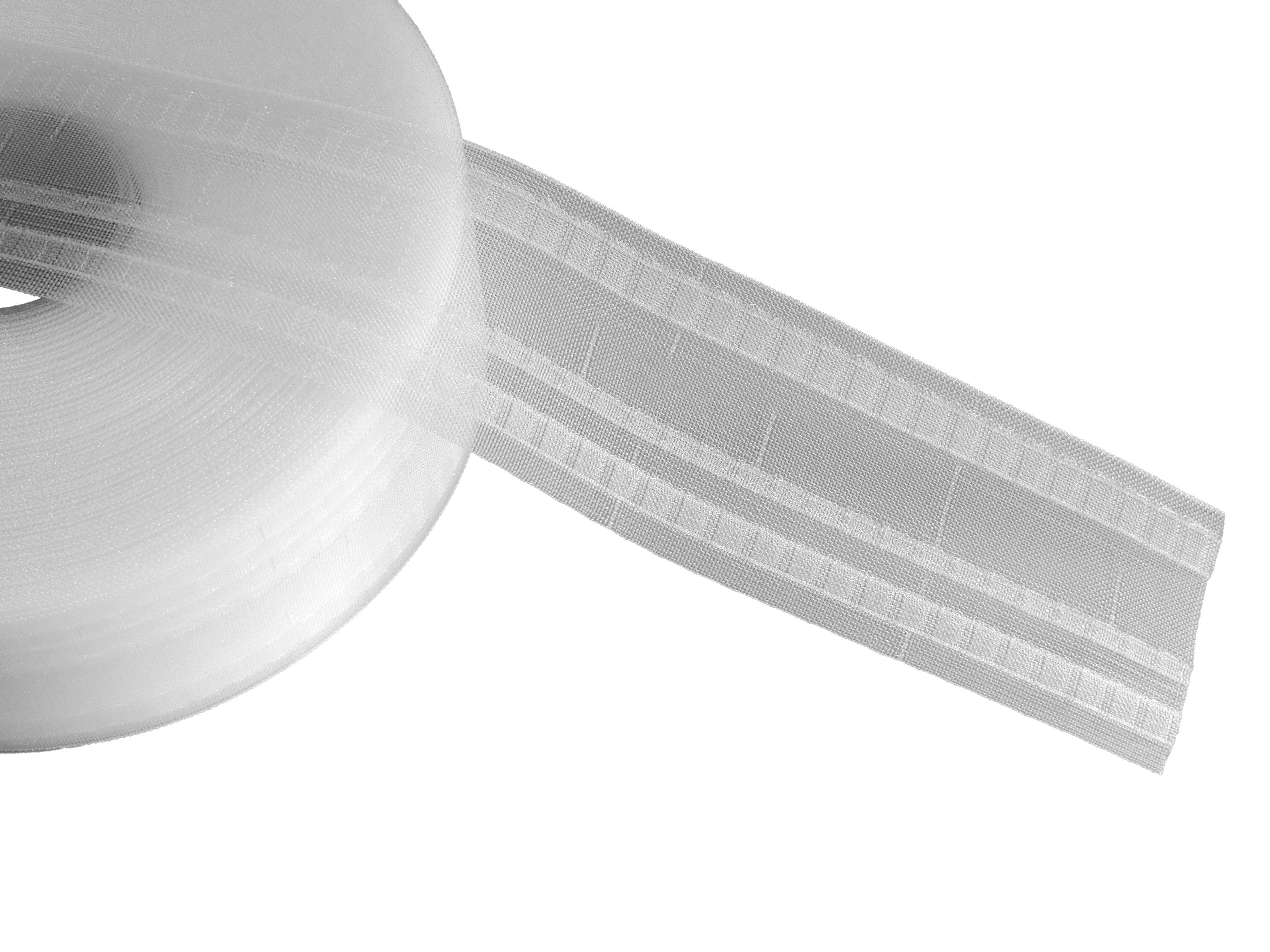 Das Band wird auf die obere Kante Ihrer Gardine genäht und dient dazu, die Gardine gleichmäßig in Falten zu legen.