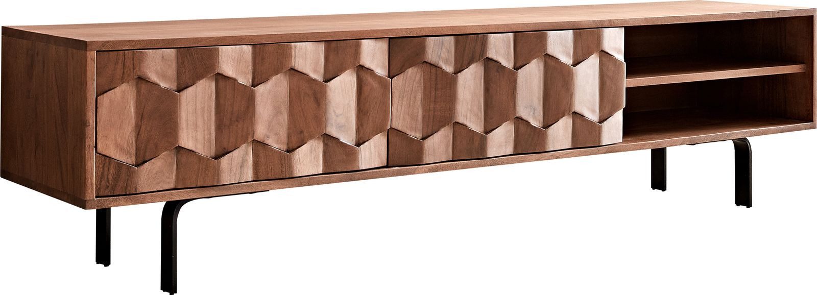 Veredelt mit einem matten Braunton versprüht das Akazienholz mit feiner Maserung eine edle Wirkung. Dank der praktischen Размер passt dieses Lowboard in fast jeden Wohnbereich und hält mit Fächern und Türen praktischen Stauraum bereit