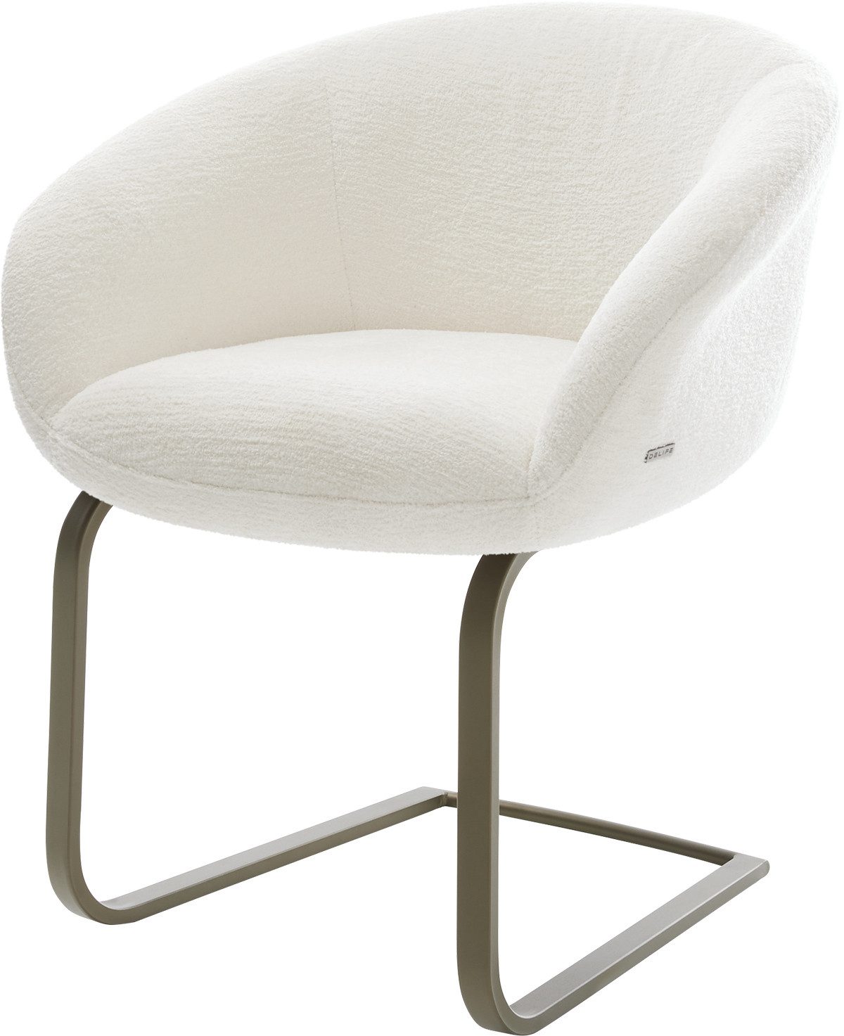 Trendiger Bouclé-Stoff in Beige – feine Struktur trifft auf dezente Farbgebung für ein modernes, wohnliches Stuhldesign mit Charakter.