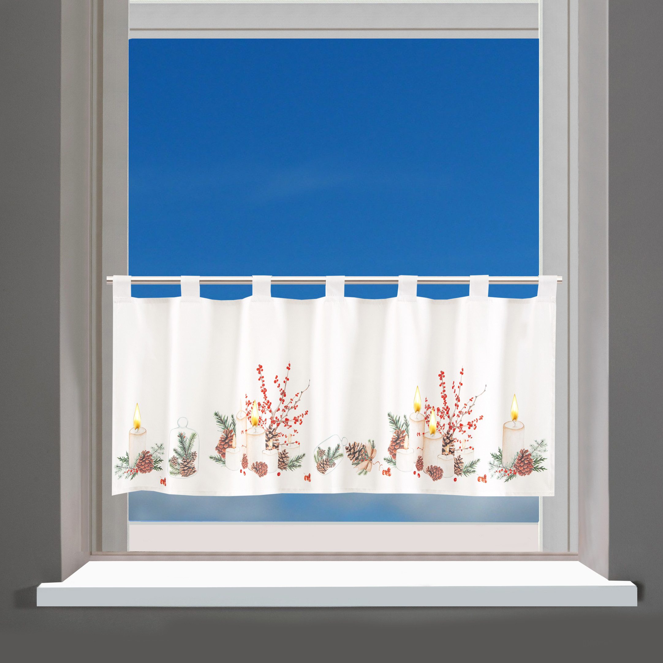 Unsere wundervolle LED Scheibengardine Bistrogardine »Kerzenschein« in der Размер 45x120 cm von Delindo Lifestyle besticht durch ihr dezentes weihnachtliches Druckmotiv. Das Motiv ist auf einem blickdichten Stoff einseitig aufgedruckt und bezaubert am Abend durch die stimmungsvolle Beleuchtung. Diese Bistrogardine bietet einen guten Sichtschutz gegen neugierige Blicke und glänzt mit pflegeleichten Merkmalen, sodaß sie in der Waschmaschine waschbar ist. 4 LED’s sorgen für eine harmonische Stimmung in der herbstlichen Zeit. Die LED-Lichterkette befindet sich auf der Rückseite. Diese kann man vor der Wäsche abnehmen. Es werden 2 AAA-Batterien benötigt. Diese sind nicht im Lieferumfang enthalten. Die Aufhängung erfolgt an Schlaufen und ist für Stäbe bis zu 30 mm Durchmesser geeignet. Lassen Sie sich bezaubern durch diesen einzigartigen Blickfang für Ihr Fenster. Sie erhalten ein hervorragendes Qualitätsprodukt aus dem Hause DELINDO LIFESTYLE.