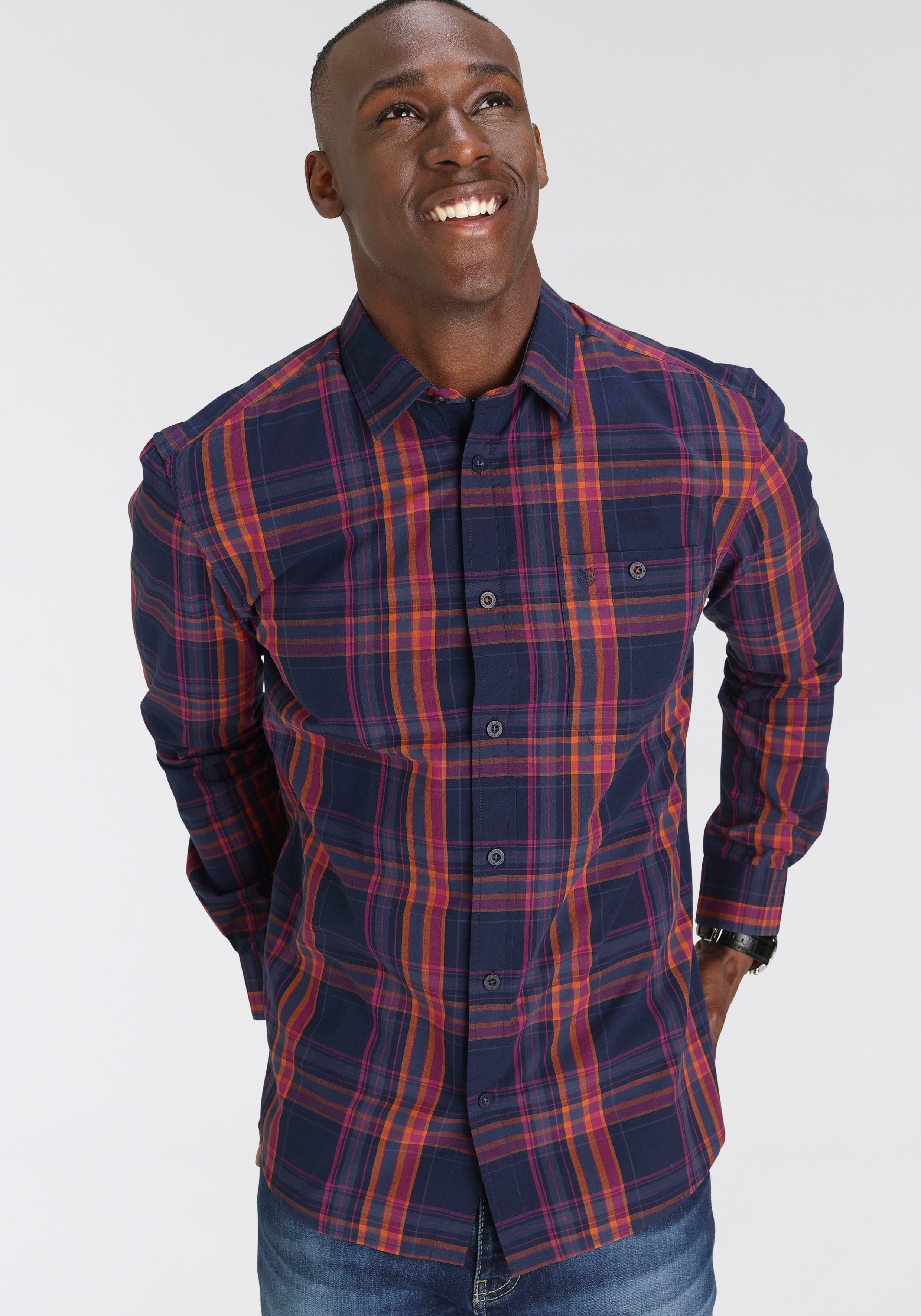 Mit dem Karohemd von DELMAO stellst du im Handumdrehen ein neues Outfit zusammen. Durch den Print und die Stickerei wirkt es sowohl locker als auch frisch. Der Kentkragen ist mit seinen mittellangen, spitzen Kragenenden ein echter Klassiker, der sich für breite Krawattenknoten eignet. Die langen Ärmel enden in einer geknöpften Manschette. Dieses Hemd ist tailliert geschnitten, sodass dein Oberkörper schön betont wird.