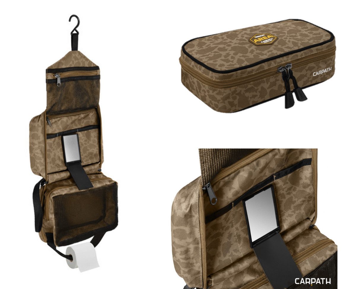 Hygienetasche Waschtasche mit Spiegel und Plastikhaken zum hinhängen. Delphin Area NICE Carpath ist eine Tasche, die für hygienische Bedürfnisse entwickelt wurde. Die Tasche ist mit einem praktischen Klettverschluss ausgestattet, der durch einen Plastikhaken ergänzt wird. Sie können diese Tasche an ein Zelt, einen Stamm oder einen Ast eines Baumes hängen. Am gegenüberliegenden Ende haben wir einen Klettverschluss angebracht, den Sie durch die Mitte einer Rolle Toilettenpapier führen und verbinden. Dann können Sie dieses Toilettenpapier problemlos abwickeln. Im Inneren befinden sich praktische Taschen, die mit einem Reißverschluss verschlossen werden können. In der Mitte befinden sich 3 Trennwändern, in dem Sie beispielsweise einen Kamm, eine Pinzette, eine Schere und andere Dinge aufbewahren können. Sie finden hier auch einen kleinen Spiegel (5,5x8cm), der per Klettverschluss an der Tasche befestigt ist. Bei Bedarf können Sie ihn rausnehmen. Die Tasche ist außen mit einer Handschlaufe zum leichteren Tragen ausgestattet. Die Tasche ist mit hochwertigen Reißverschlüssen ausgestattet. Die äußeren Reißverschlüsse sind mit einem Kunststoffabzieher ausgestattet, der am Ende verbreitert ist. Das Design der Tasche wird durch unsere einzigartige braune CARPATH-Tarnung mit Karpfen-Silhouetten ergänzt.