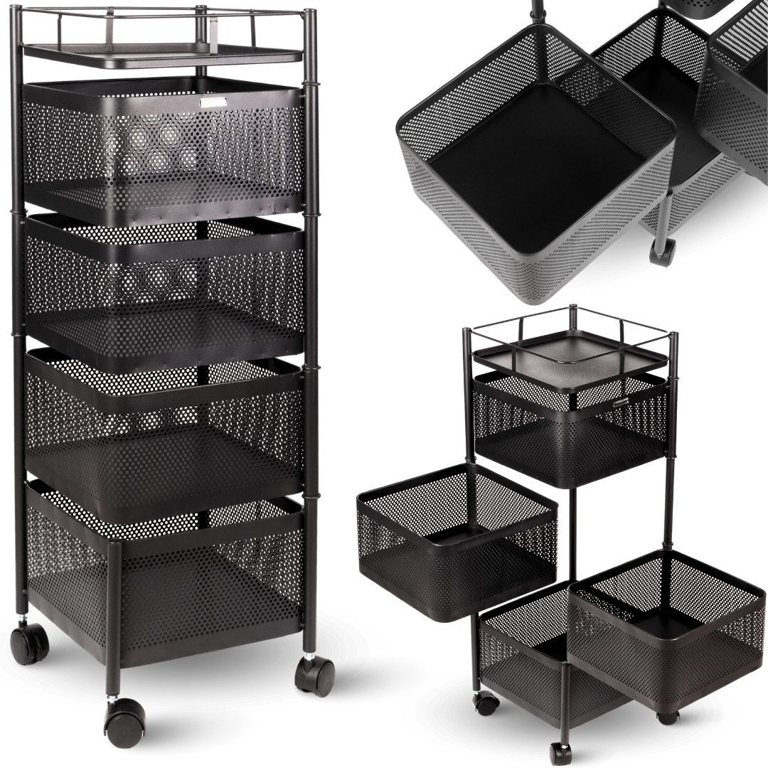 deluxe4home Rollwagen Küchenwagen mit 4 Ebenen I Rollbarer Aufbewahrungswagen, Schwenkbare Fächer