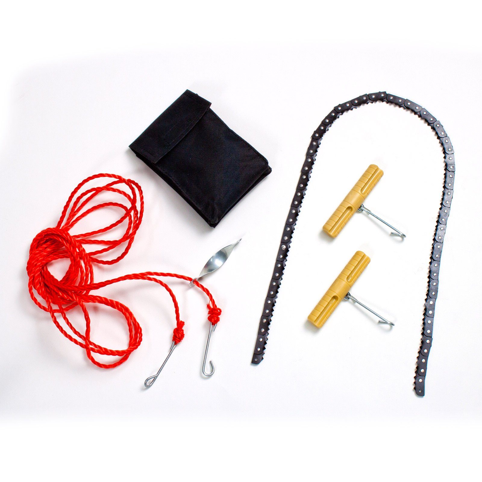 Störende Äste sägen Sie nun mühelos mit nur ein ein paar Handgriffen und ohne viel Kraftaufwand ab. Egal, ob in luftiger Höhe, waagerechte Schnitte in Hüfthöhe oder Wurzelwerk in Bodennähe. Auch dort wo eine normale Säge nicht hinkommt oder zu Zeiten, wo Lärm unerwünscht ist. Unsere flexible Hand-Kettensäge ist dafür die Lösung! Einfach um den Ast herum legen und wie eine Säge hin und her ziehen. Dabei können Sie zwischen "Hochsägen" mit Schnurverlängerung oder auch Direktsägen ohne Schnurverlängerung wählen. Super praktisch und fast unendlich vielseitig. Nach der Arbeit kommt die Säge wieder gut verstaut in die Systemtasche und ist dort sicher aufgehoben.