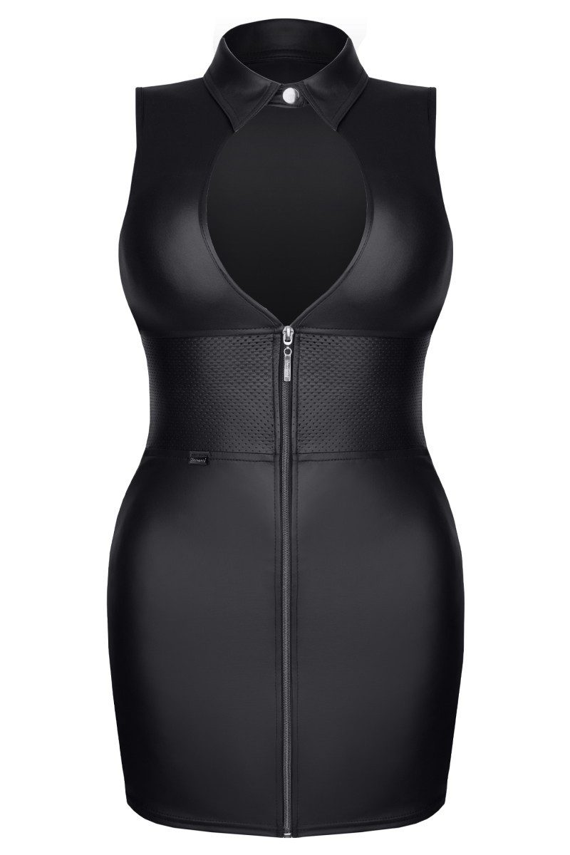 Wetlook kleid im Militärstil. Der runde Ausschnitt vorne bringt das Dekolleté wunderschön zur Geltung. Von der unteren Brustlinie bis zur unteren Taille, rundherum Wetlook mit Nadelloch-Stoffeinsätzen. Es betont die Taille auf unglaublich Art und Weise. Vorne befindet sich außerdem ein dekorativer Reißverschluss. Der Reißverschluss ist mit einem eingravierten Demoniq-Logo versehen. Es hat eine dekorative Funktion, erleichtert aber auch das Anziehen des Kleides. Der untere Teil des Kleides betont sehr, sehr attraktiv die Form der Hüfte und des Gesäßes.Modell auf dem Foto: 164 cm groß.Produktgröße: S Der Artikel ist in einer hochglanz Box mit Bild verpackt.Pflegehinweis : 30Grad Handwäsche Farbe : schwarzMaterial : 95% Polyester / 5% Elasthanerhältliche Größen : S, M, L, XL, XXL