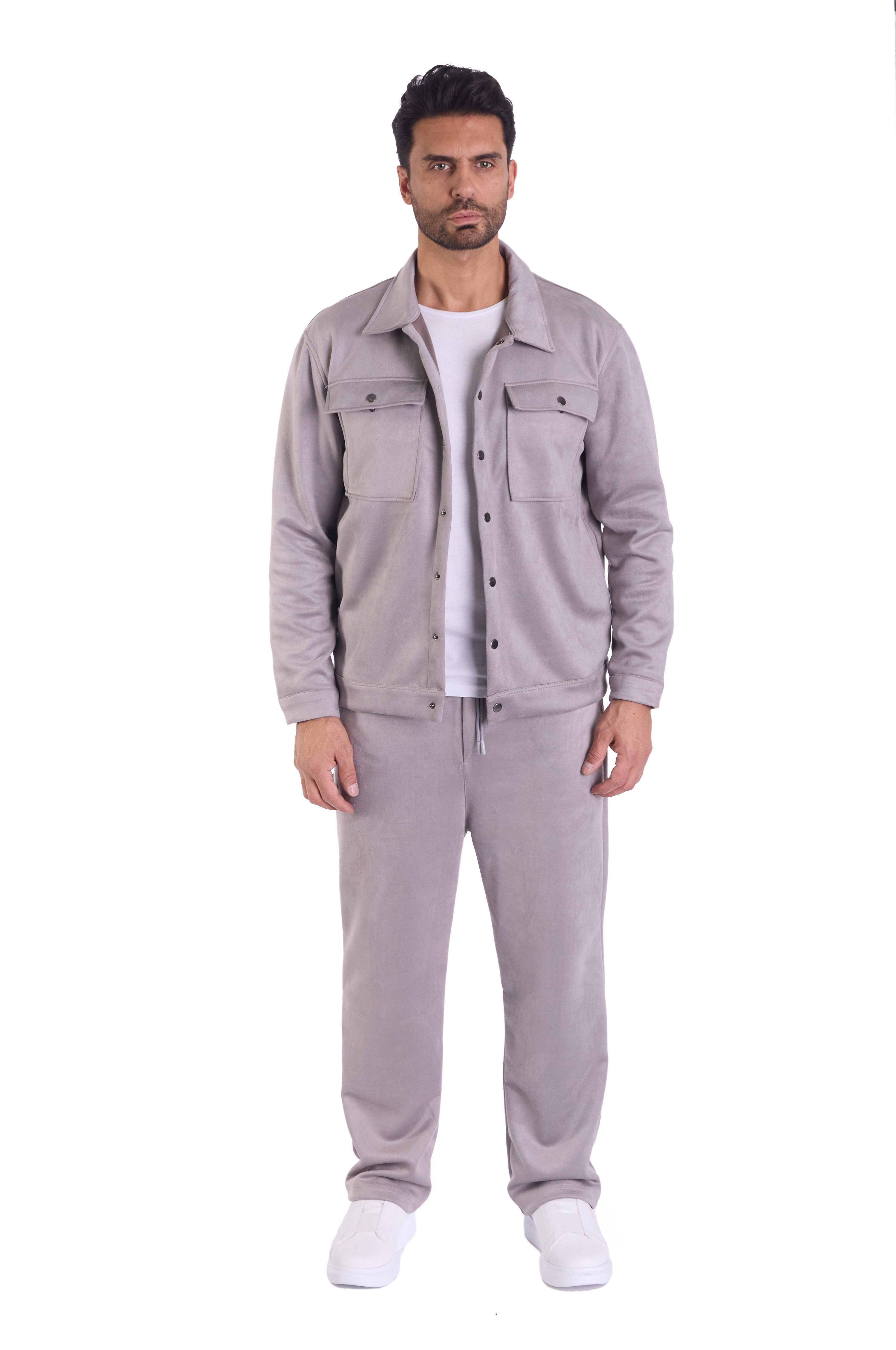 Dieser Velours-Freizeitanzug ist der perfekte Begleiter für entspannte Tage und verleiht jedem Outfit eine lässige Eleganz.