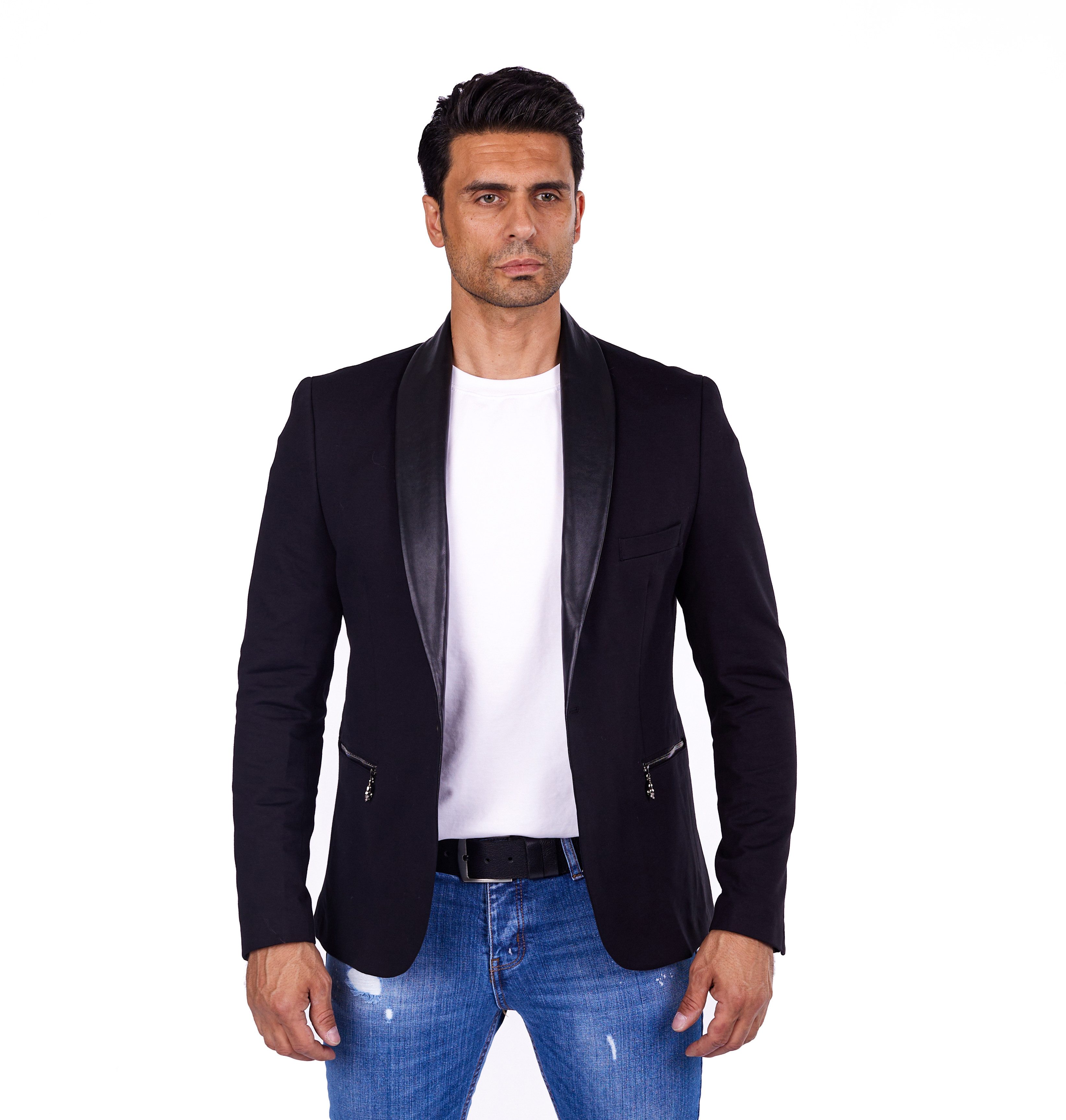 • Stylisches Herren Sakko modisch in Szene gesetzt mit einem extravaganten Totenkopf und Nieten auf der Rückenpartie. Der Kragen aus feinstem Kunstleder und ist ein absolutes Highlight. Idealerweise bietet dieses Sakko auch Stauraum für Kleinigkeiten durch die Brustleistentasche, 2 Pattentaschen und 2 Innentaschen.