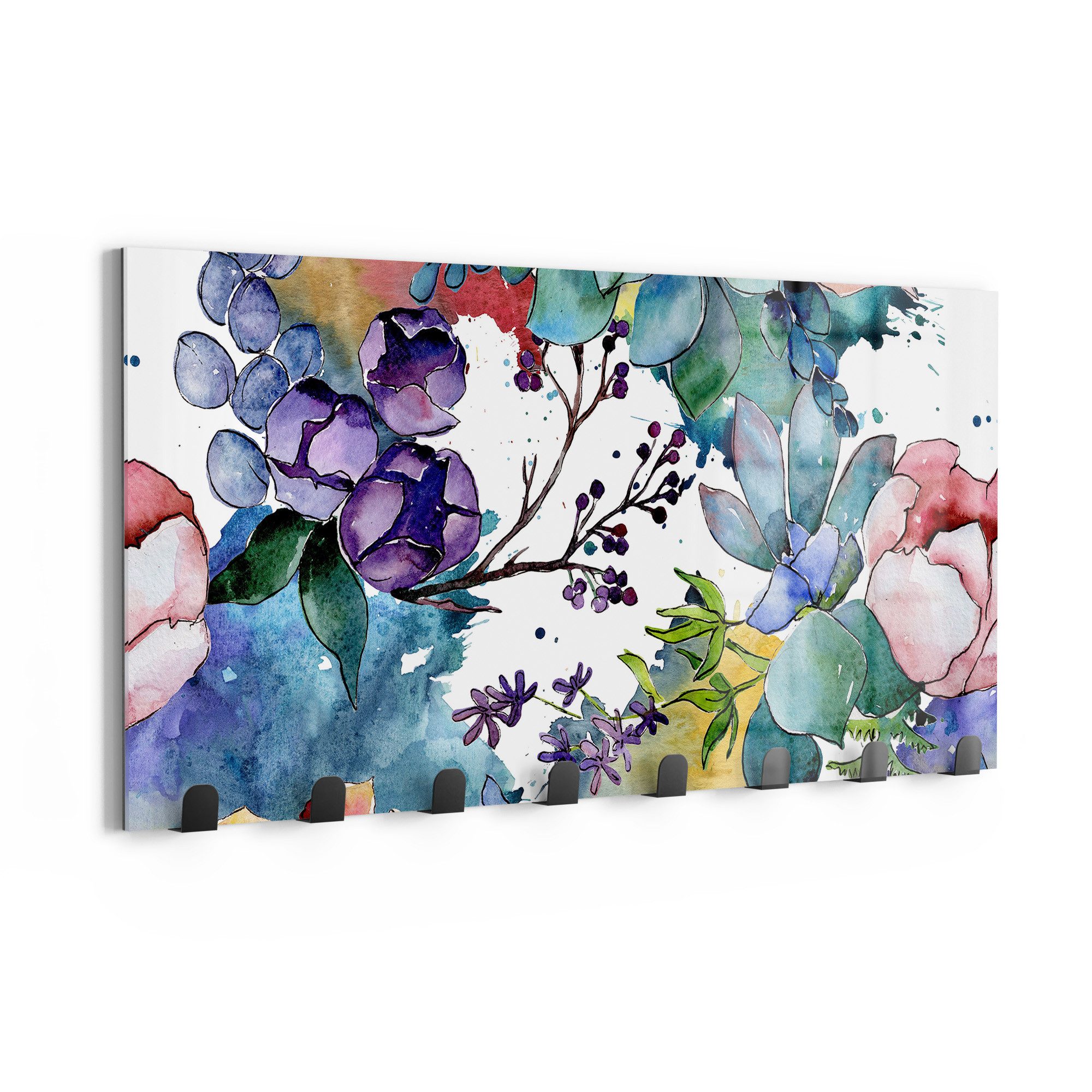 DEQORI Kleiderhaken 'Bunter Blütenrausch', Glas Garderobe Paneel magnetisch beschreibbar