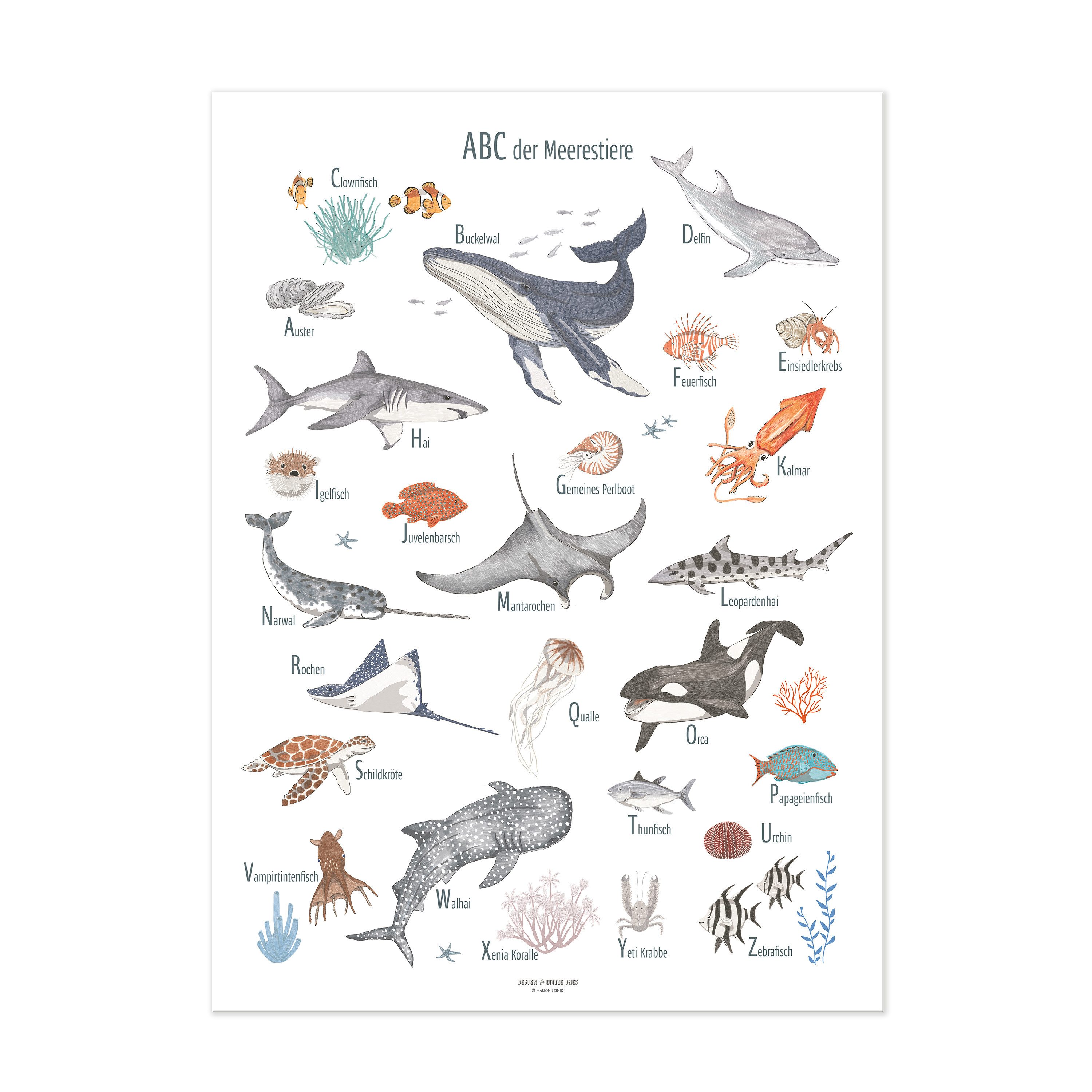 Tauche ein in eine Welt voller Farben und Fantasie! Unser "Meeres-ABC"-Poster ist mehr als nur ein Poster – es ist eine Einladung zu einer Reise in die Tiefen des Ozeans. Von der anmutigen Qualle bis zum geheimnisvollen Narwal – jedes Tier ist ein kleines Kunstwerk und erzählt seine eigene Geschichte. Lerne das Alphabet auf eine spielerische und wunderschöne Art und Weise und lass dich von der Vielfalt des Meeres verzaubern! Jedes Tier ist liebevoll illustriert und mit seinem Namen versehen, sodass sich die Buchstaben und die Meereswelt ganz leicht einprägen. Ob Clownfisch, Buckelwal oder Tintenfisch – dieses Poster ist ein Muss für jedes Kinderzimmer und weckt die Neugier auf das Meer! • Wunderschöne Illustrationen: Ein echter Hingucker für jedes Kinderzimmer. • Das Alphabet unter Wasser: Lerne spielend die Buchstaben kennen. • Fördert die Fantasie: Inspiriert zu Geschichten und Abenteuern. • Hochwertiger Druck: Farbenfrohe und detailreiche Qualität. • Ein besonderes Geschenk: Für Kinder, die das Meer lieben und ihre Fantasie beflügeln wollen.