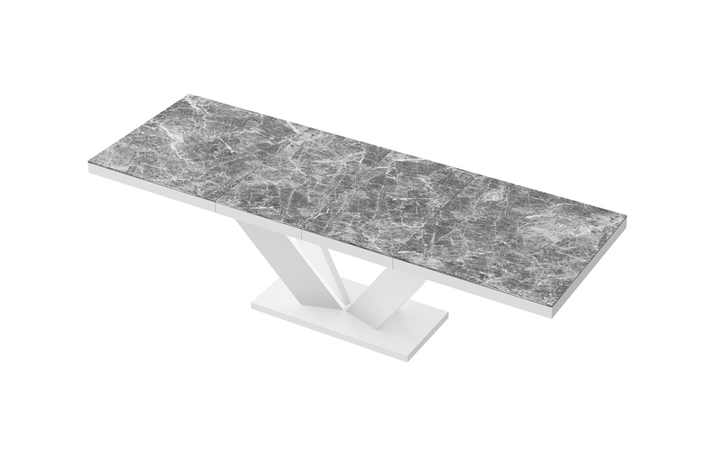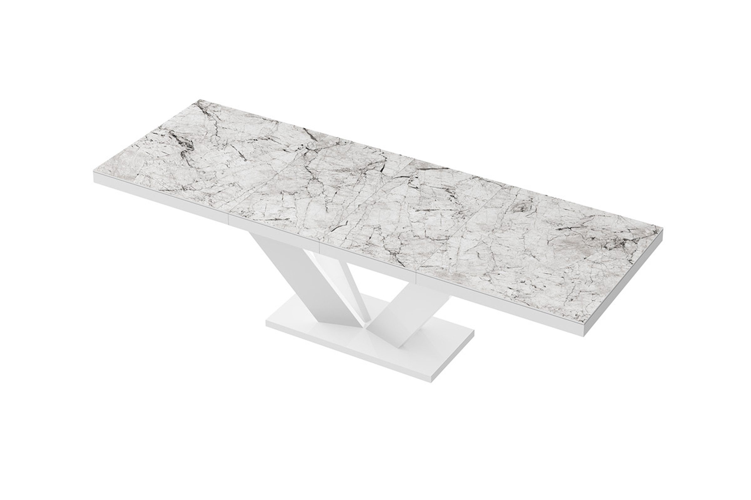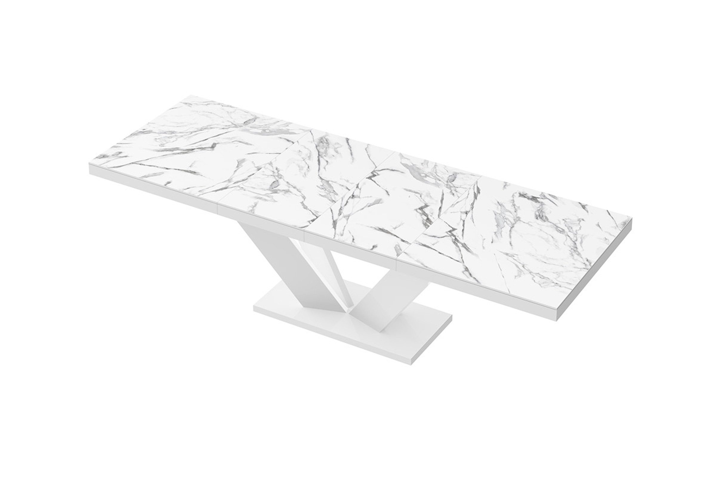 Der Tisch lässt sich durch einen praktischen Synchronmechanismus erweitern – ziehen Sie einfach an einer Seite, und die Tischplatte vergrößert sich mühelos. Mit zwei zusätzlichen Verlängerungsplatten bietet der Tisch Platz für bis zu 10 Personen.