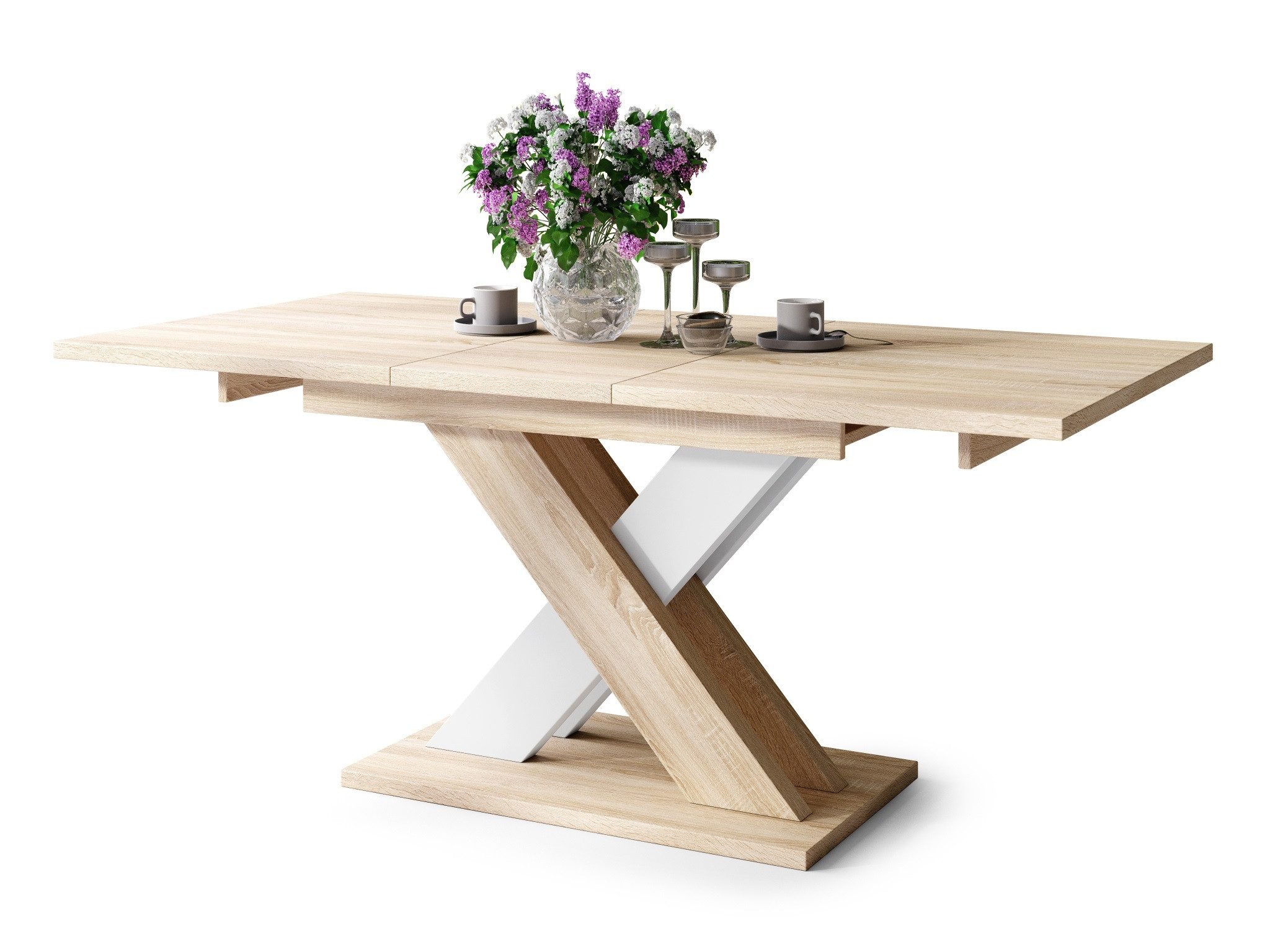 - Breite: 140 / 180 cm (die Verlängerungsplatte wird bequem und nicht sichtbar im Tisch verstaut)
