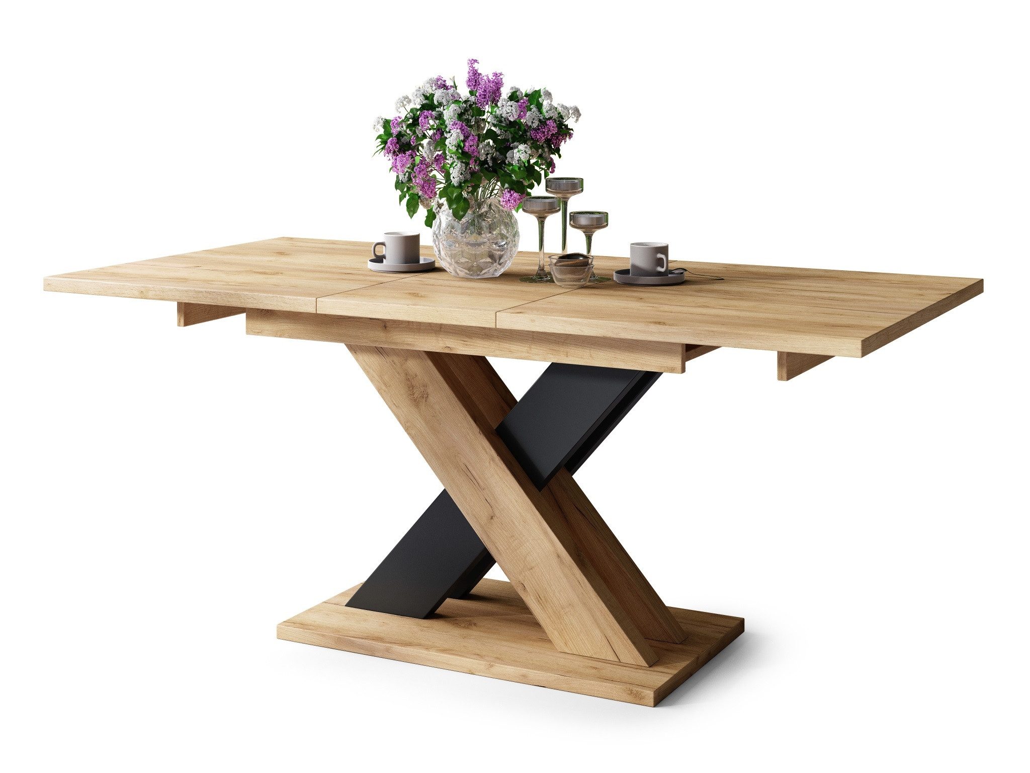 Ein schöner und sehr praktischer Esstisch, der sich in der Длина ausziehen lässt. Um die Длина des Tisches zu vergrößern, werden die beiden Oberplatten auseinandergezogen (durch das Ziehen nur einer Platte bewegt sich automatisch die andere - "Synchronauszug") und das Verlängerungselement aus dem Tisch genommen. Dieser Funktionstisch ist sowohl von seiner Erscheinung, als auch von seiner Funktionalität etwas besonderes. Durch seine Geradlinigkeit entsteht ein stilvolles und zeitloses Design, wodurch in Ihren Räumlichkeiten neue Akzente gesetzt werden.