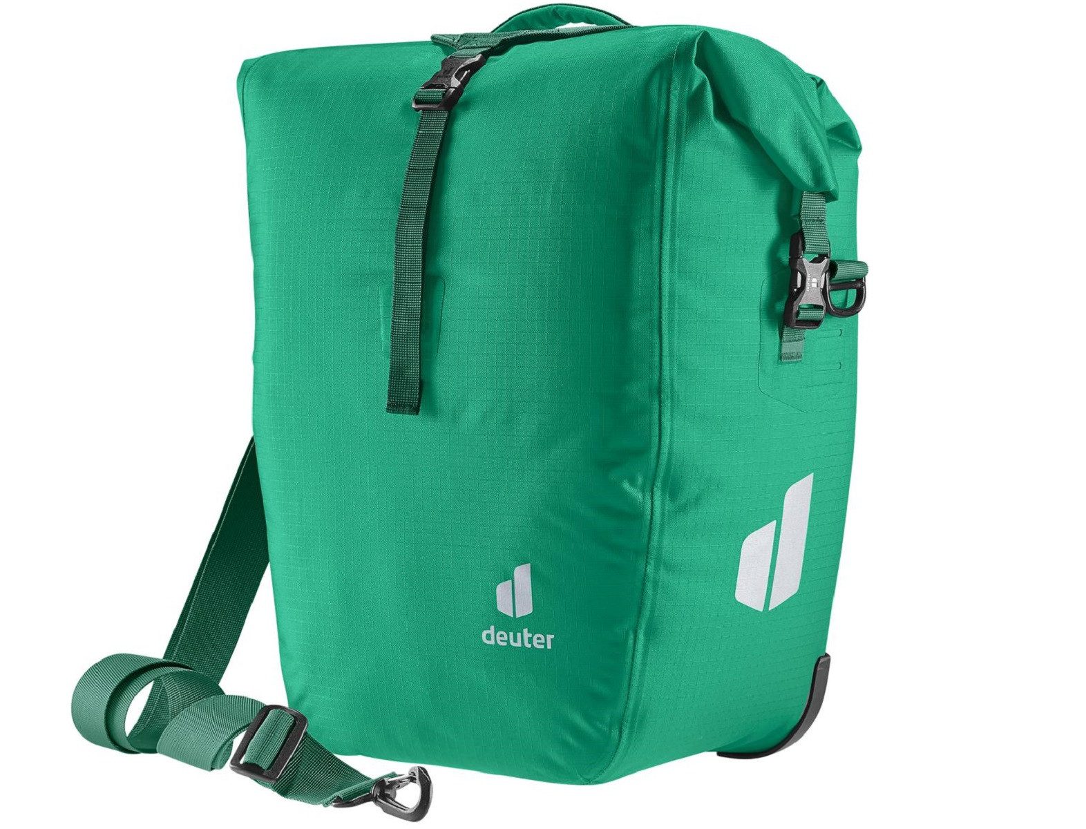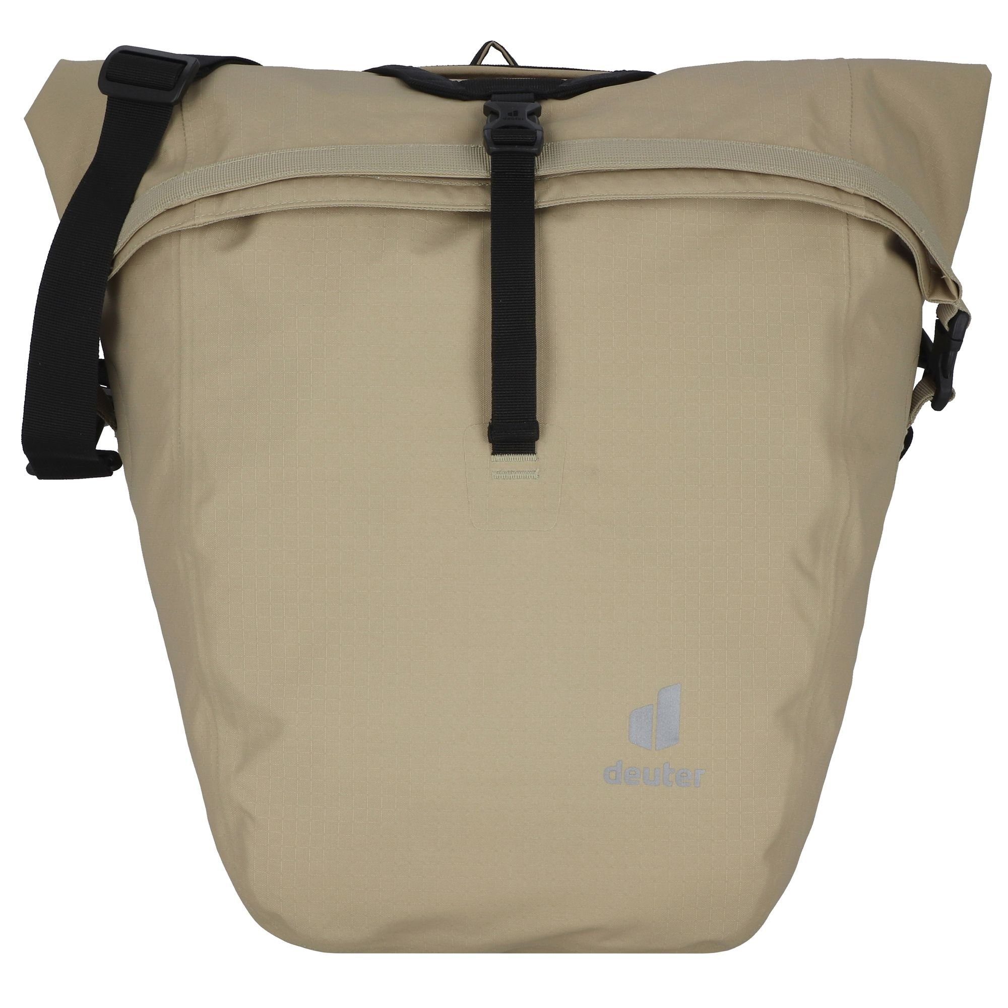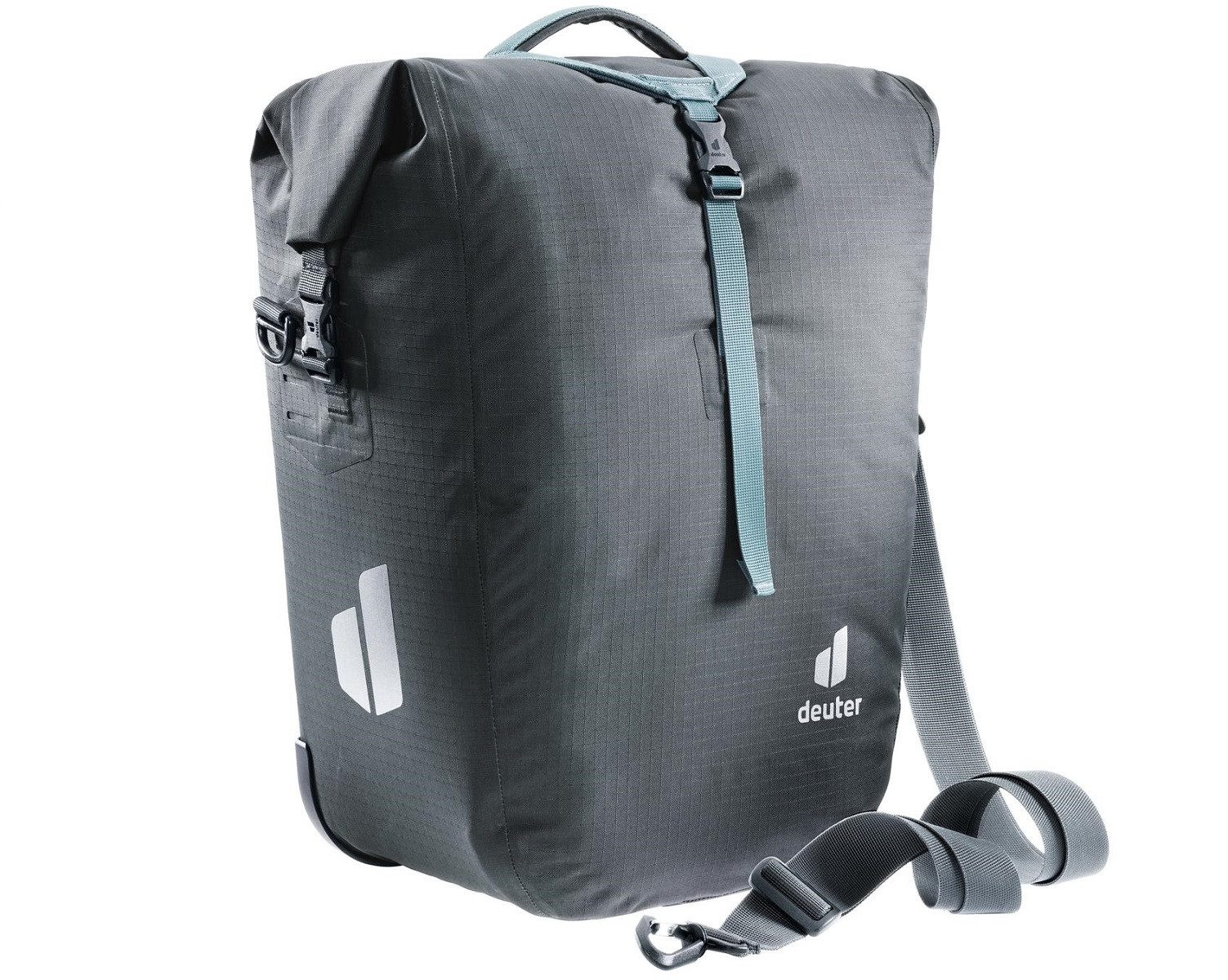 Praktische und robuste Fahrradtasche der Marke Deuter. Die Tasche ist aus strapazierfähigen Material gefertigt und ist bei Regen bzw. Spritzwasser wasserdicht. Die Reflektoren für bessere Sichtbarkeit runden das Produkt ab. Durch die speziell entwickelte Befestigung lässt sich die Tasche einfach und sicher am Gepäckträger anbringen und ist auch wieder schnell abgemacht. Dank des abnehmbaren Umhängeriemens kann die Tasche auch locker über den Körper getragen werden. Ideal für den täglichen Gebrauch.